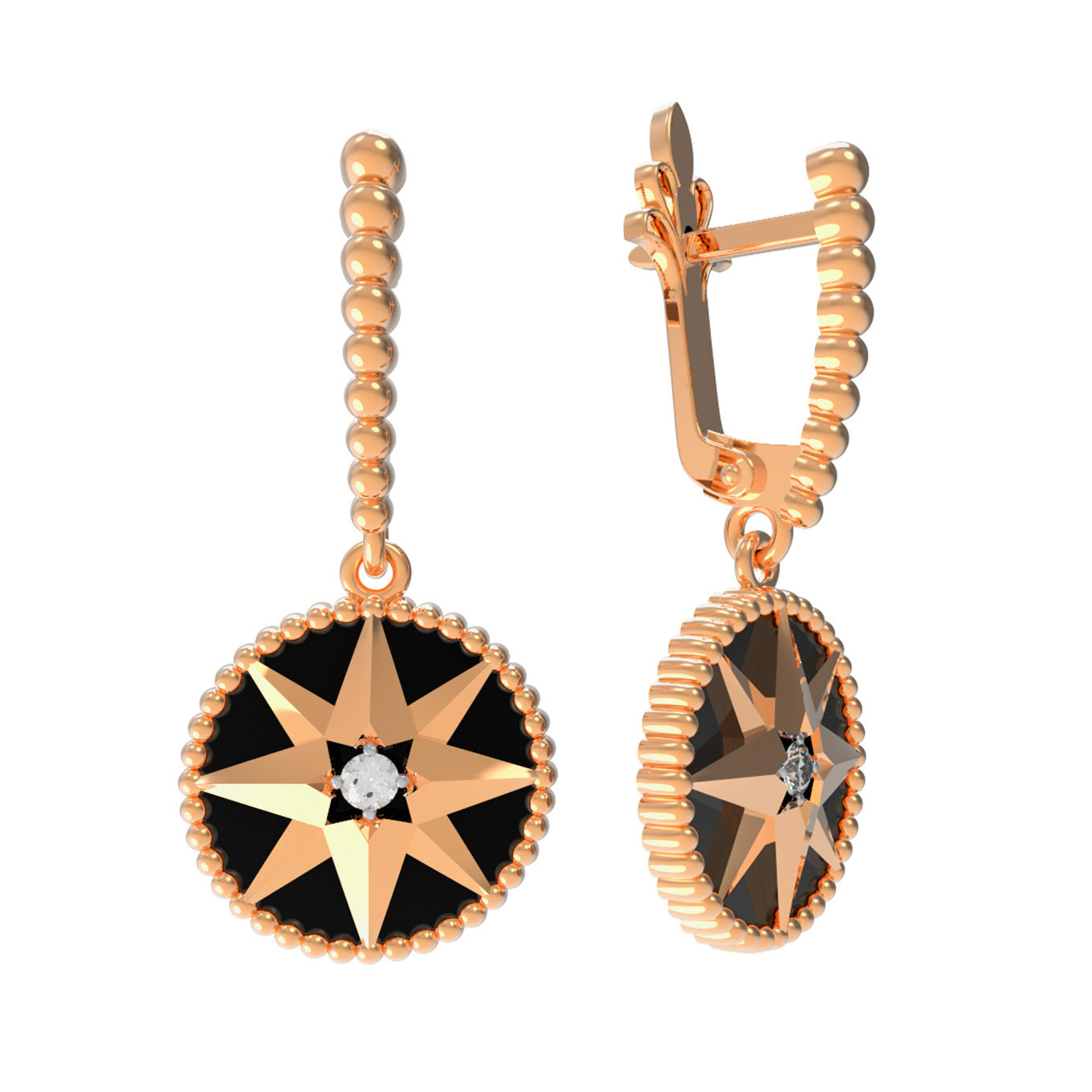 Серьги из золота c фианитом и ониксом