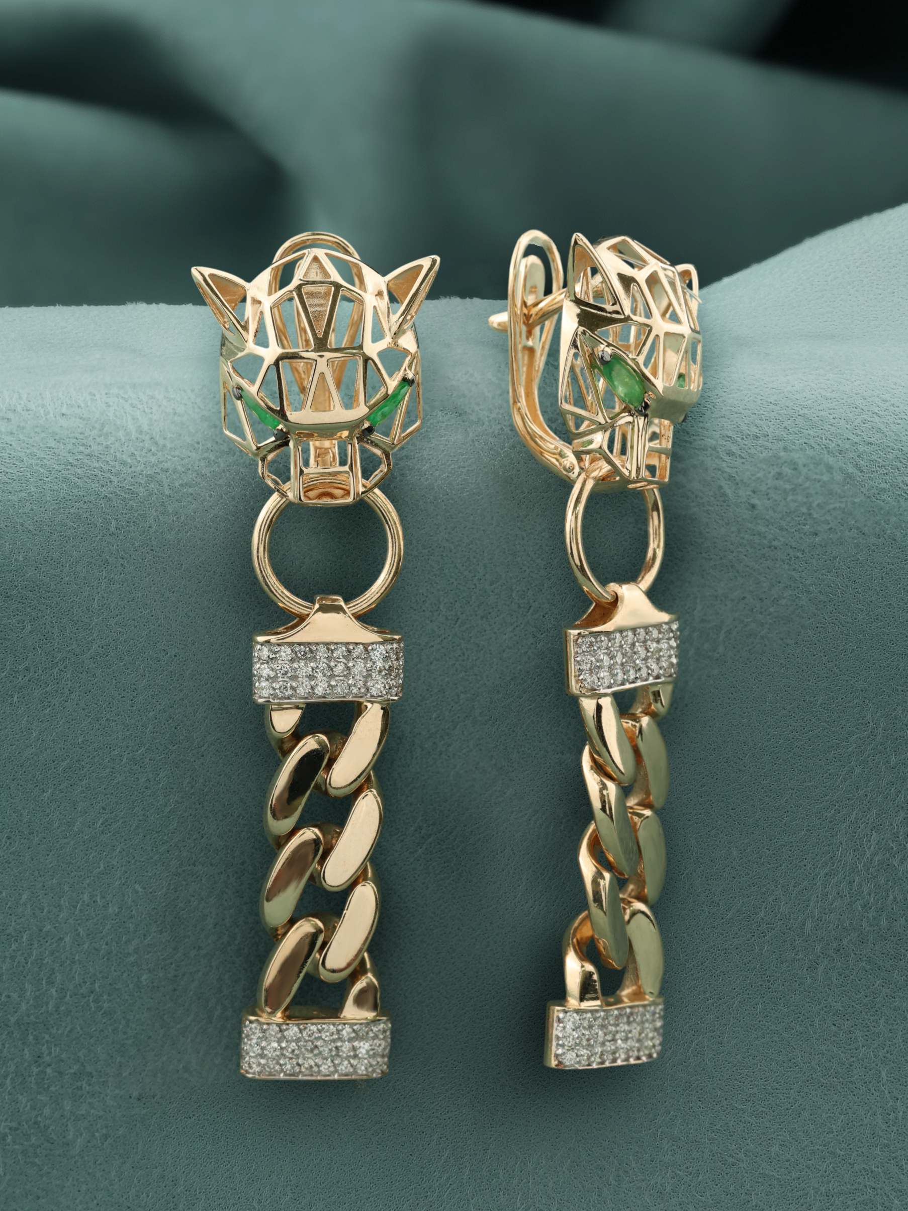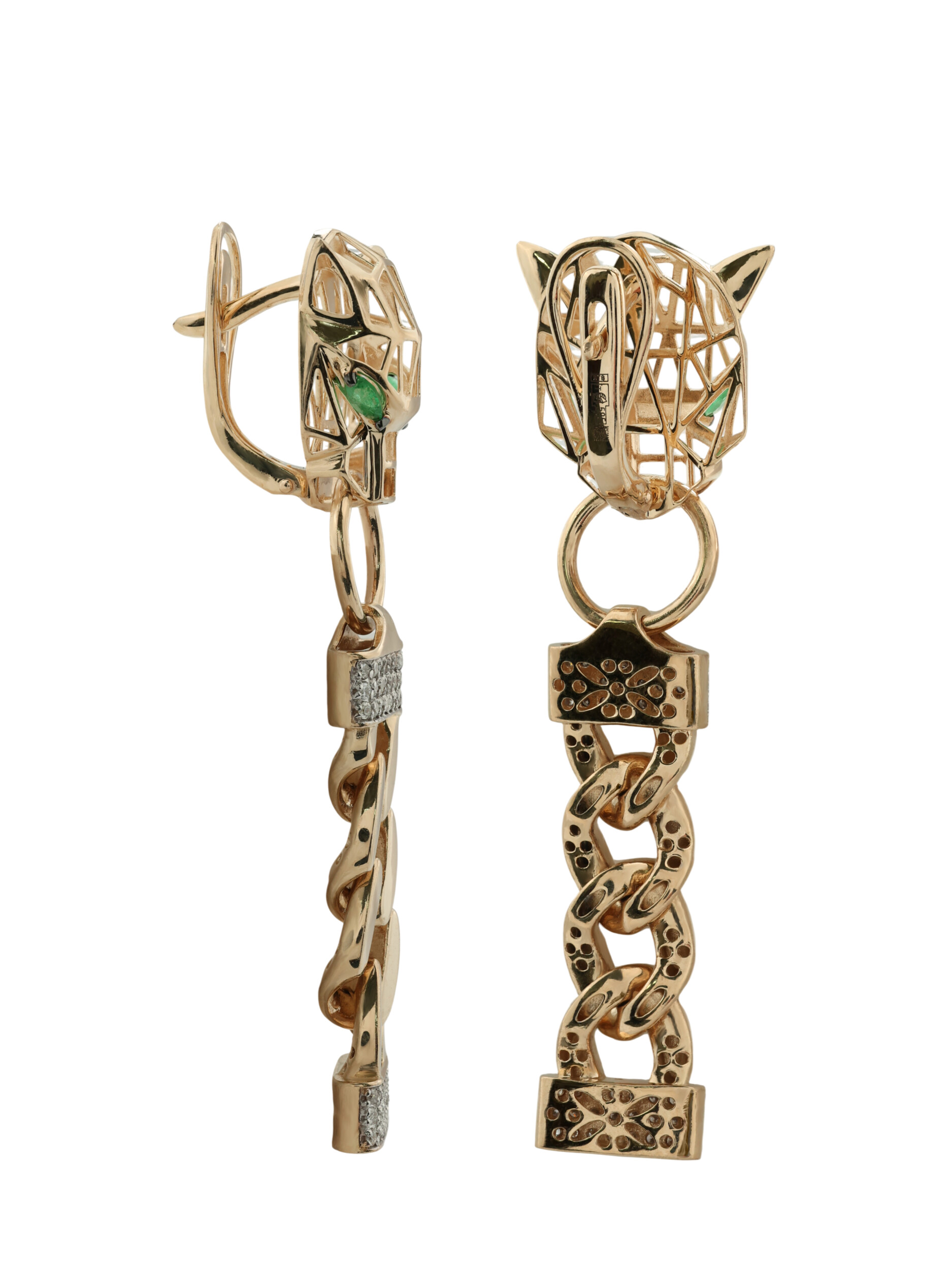 Серьги из золота c бриллиантами и изумрудом
