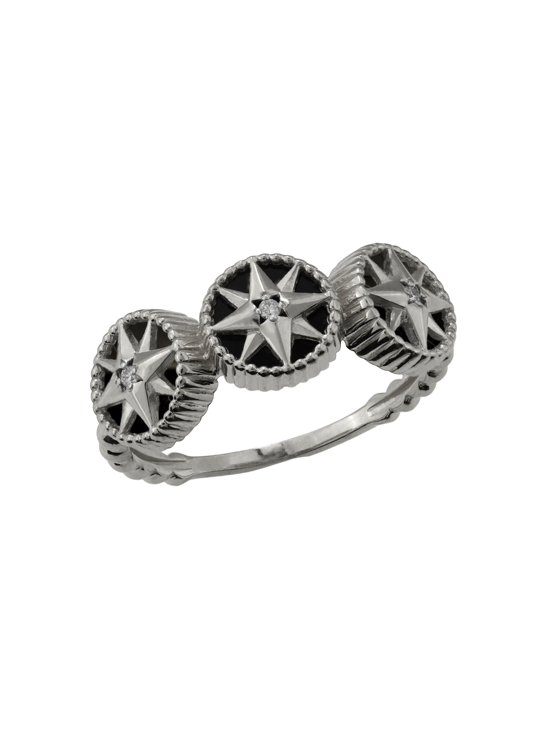 Кольцо из белого золота c бриллиантами и ониксом
