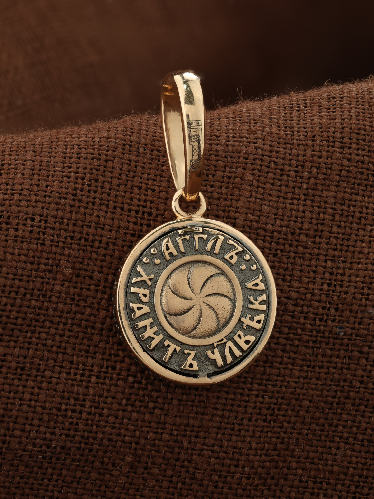 На торцевой стороне образка размещены слова: «ОБЕРЕГАЮ ПОКРЫВАЮ ЗАЩИЩАЮ».