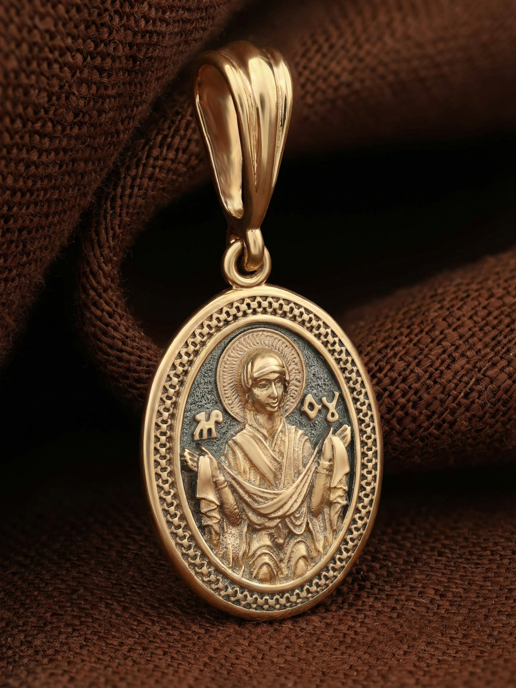На лицевой части образка изображена икона Покров Пресвятой Богородицы. Праздник Покрова Божией Матери является воспоминанием чуда, которое произошло во Влахнернской церкви 1 (14) октября 910 года: Пресвятая Богородица явилась верующим над алтарем храма и распростерла над ними Свое покрывало. В этот день Божья Матерь открыла людям, что Она является Ходатаицей за них перед Богом. Богородица простирает Свой молитвенный покров над всеми православными христианами и умоляет Сына Своего о даровании вечного спасения каждому человеку.