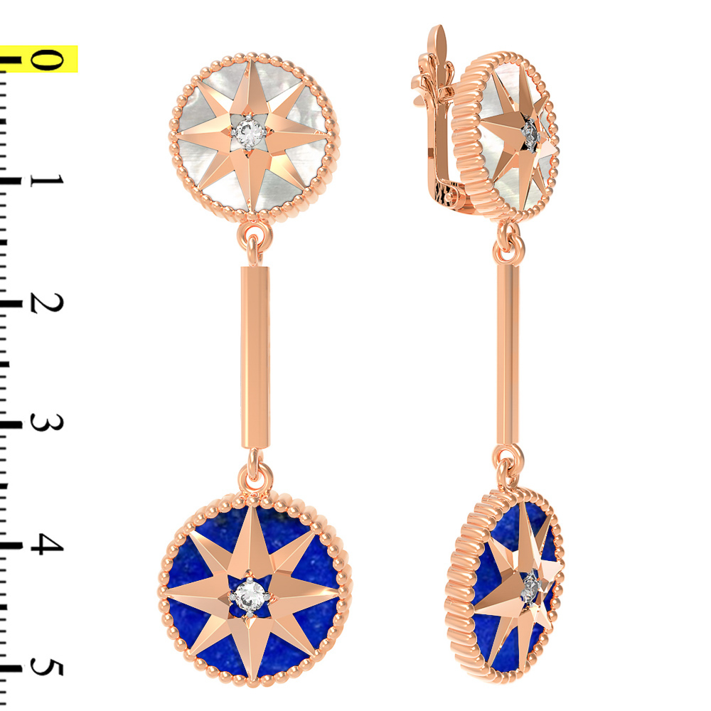 Серьги из золота c фианитом, лазуритом и перламутром