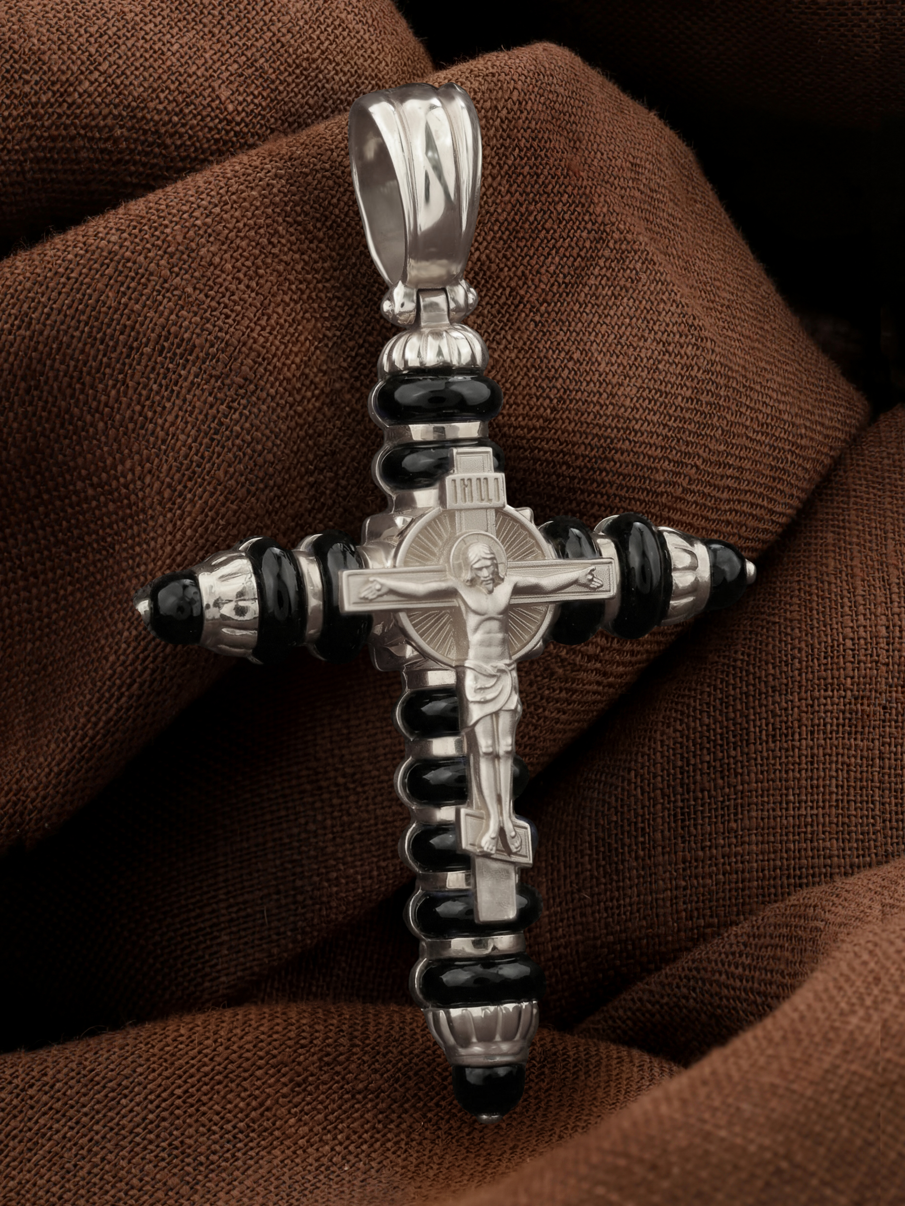 Крест из белого золота c ониксом