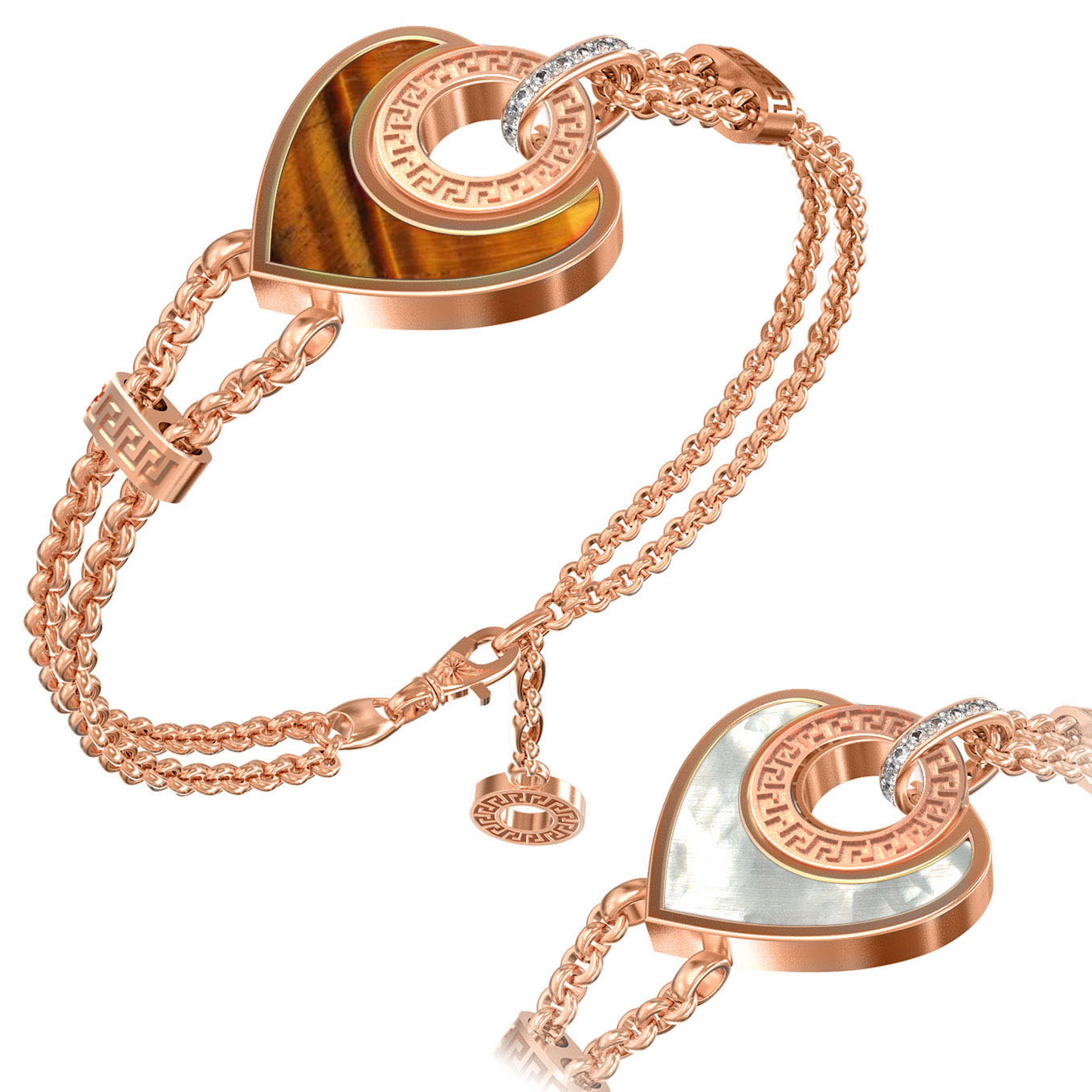• Браслет из лимонного золота c фианитом, тигровым глазом и перламутром