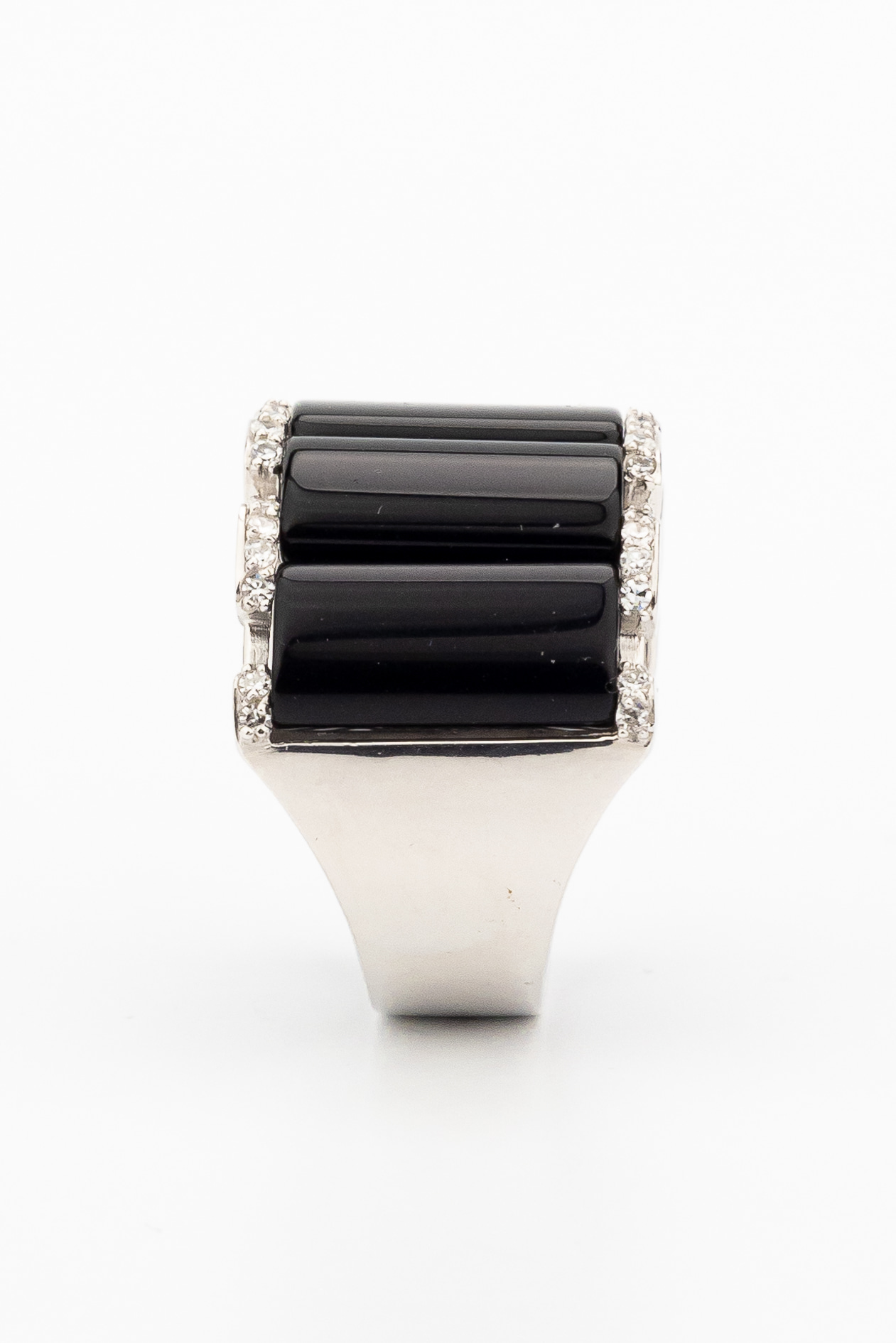 Кольцо из белого золота c бриллиантами и ониксом