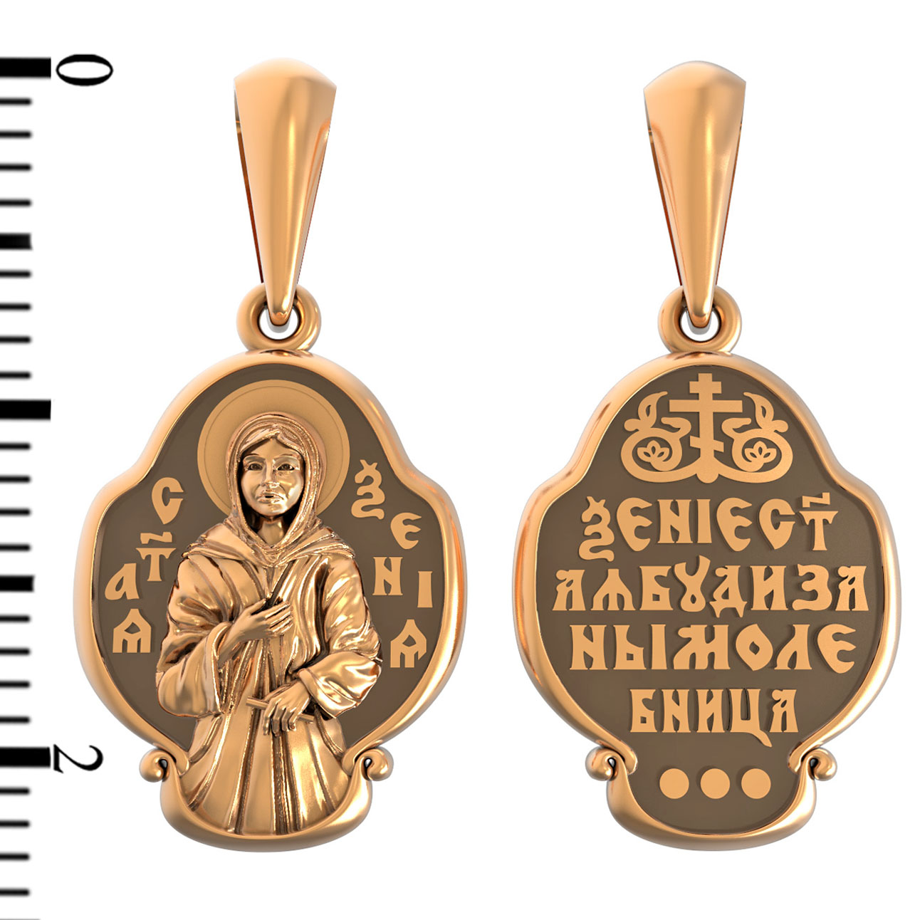 На оборотой стороне образка написана молитва: «Ксения святая, буди за нас молебница».