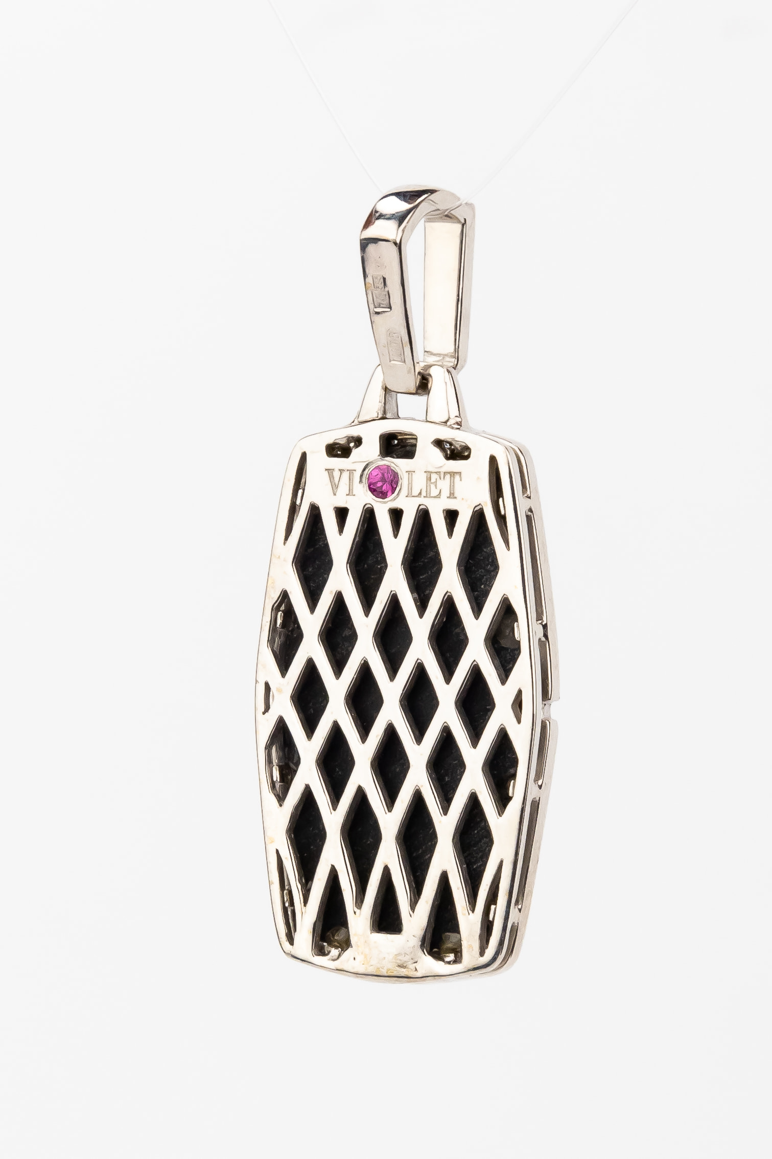 Подвеска из белого золота c бриллиантами, рубином и ониксом