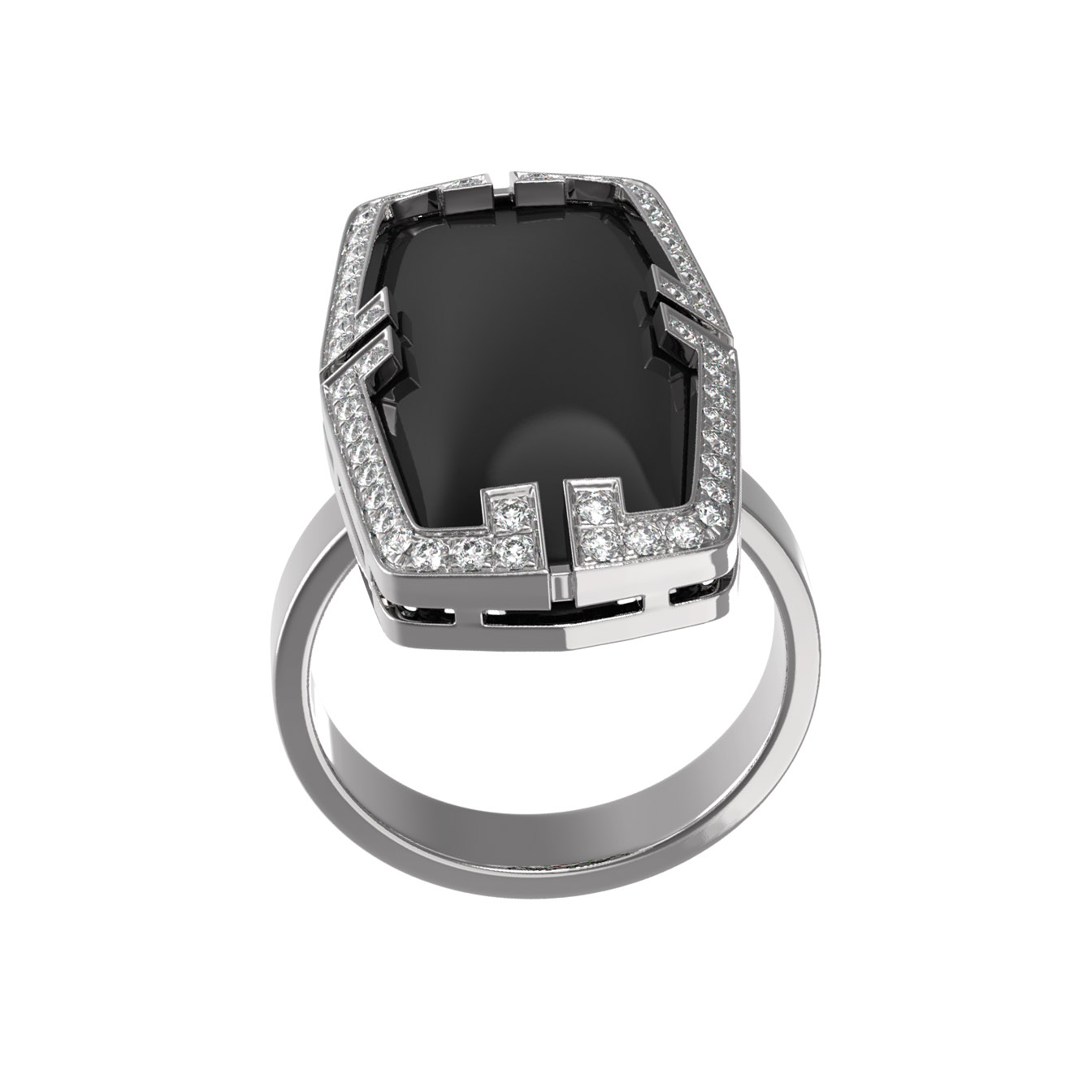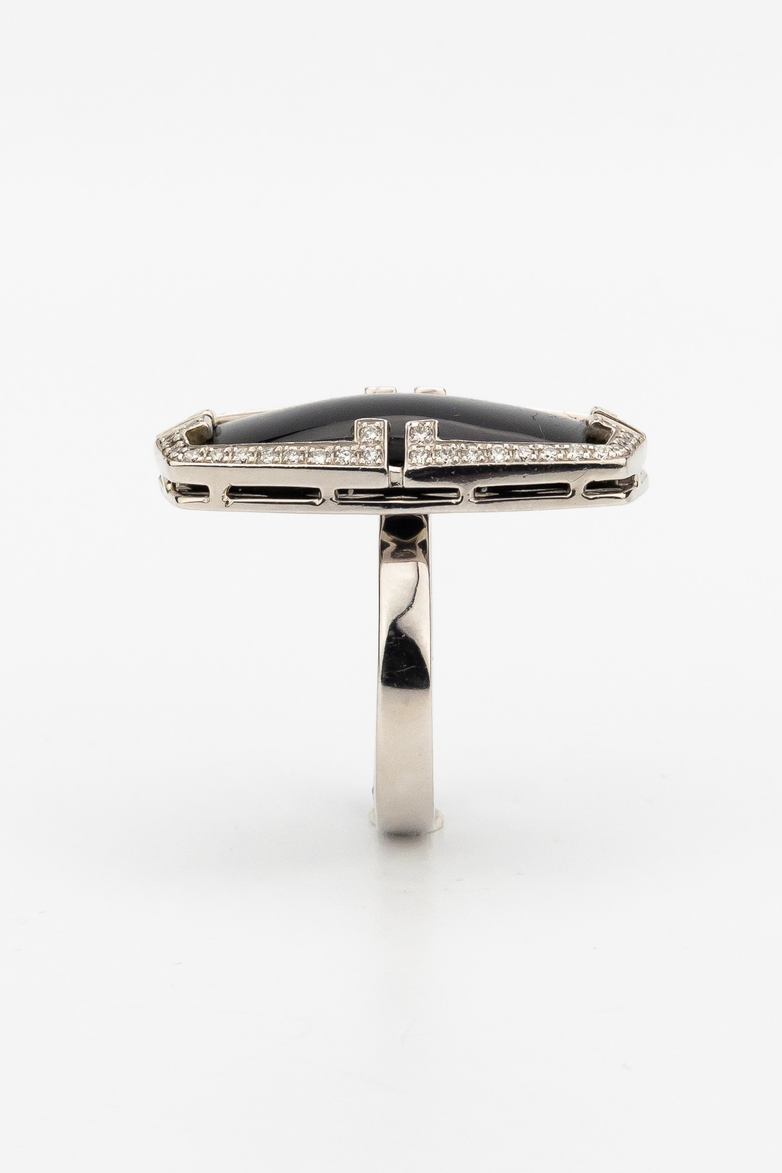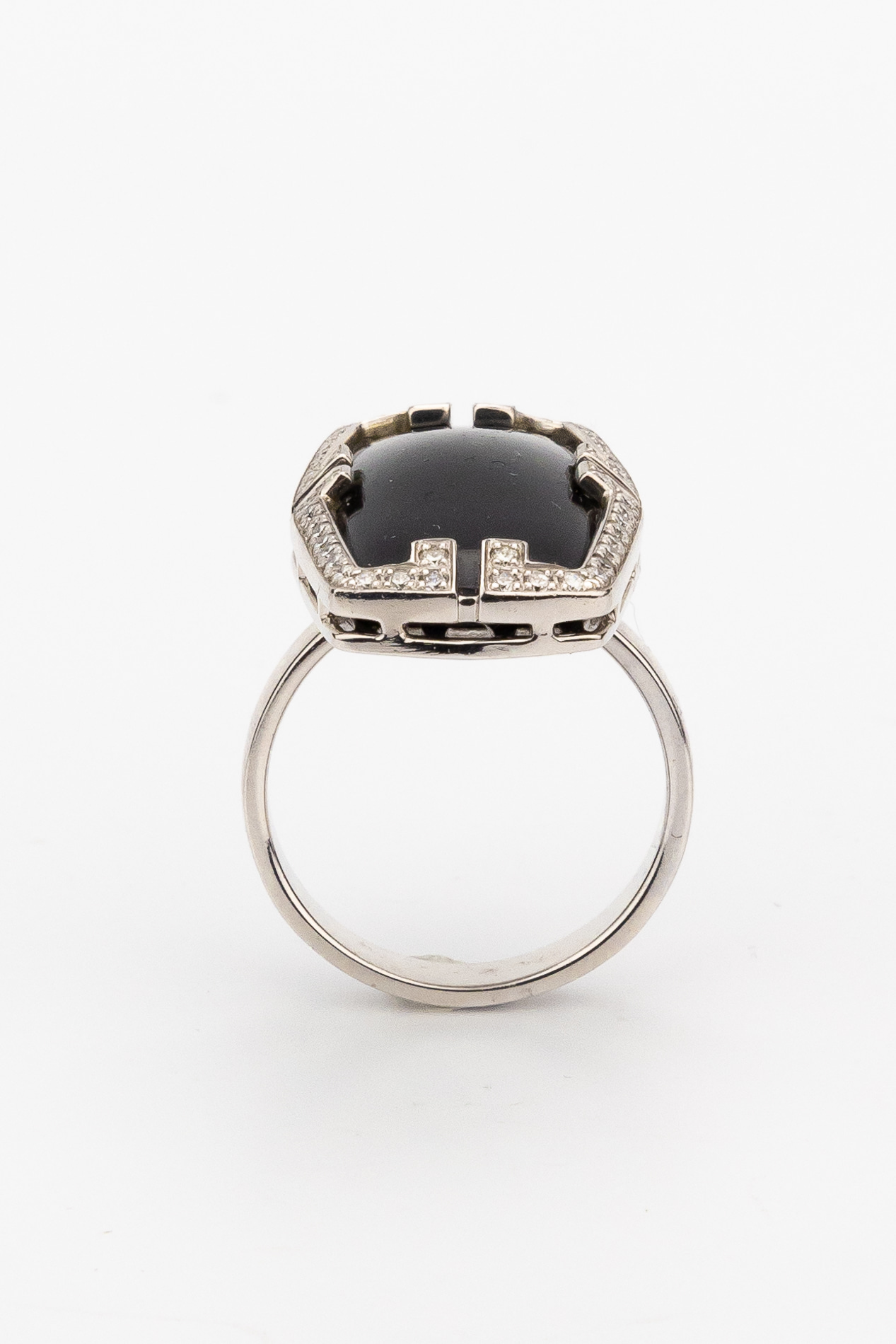 Кольцо из белого золота c бриллиантами, рубином и ониксом