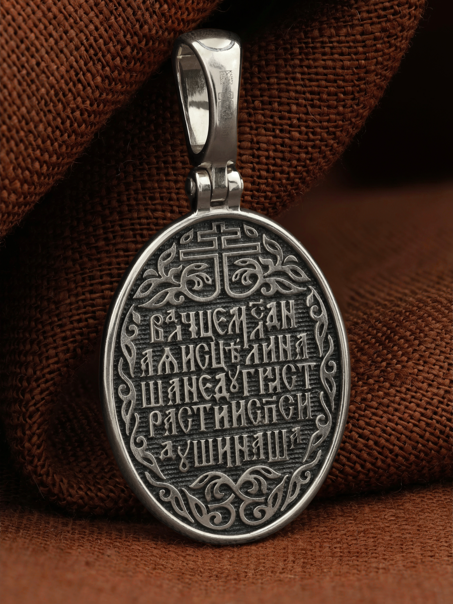 На лицевой части образка изображена икона Божией Матери «Неупиваемая чаша». Икона славится помощью в исцелении зависимостей, помогает людям обрести свободу от греховных страстей.
