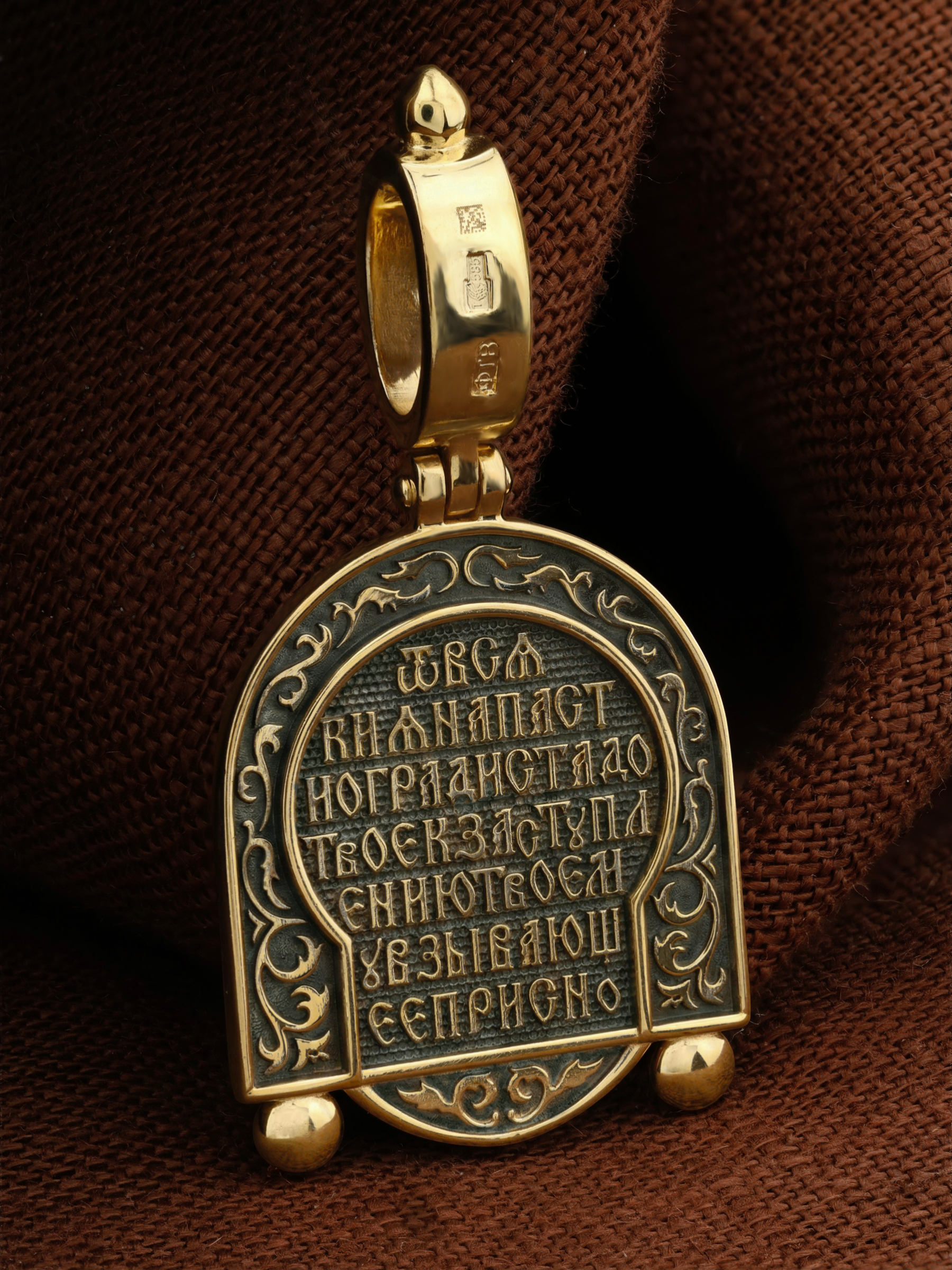 На обороте образка написана молитва Богородице в честь Ее иконы «Всецарица» (Пантанасса): «От всякия напасти огради стадо Твое, к заступлению Твоему взывающее присно».