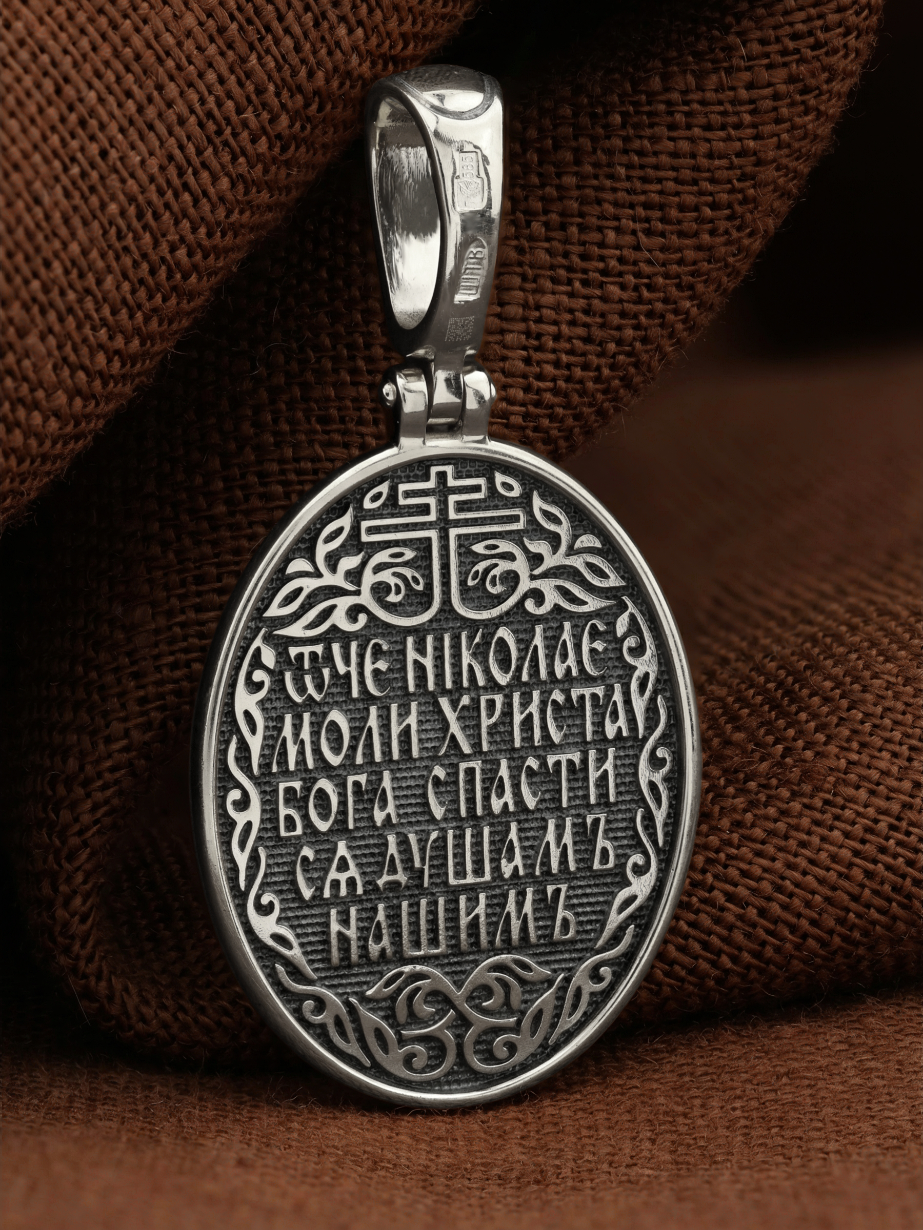 На обороте образка написана молитва: «Отче Николае, моли Христа Бога спастися душам нашим.»
