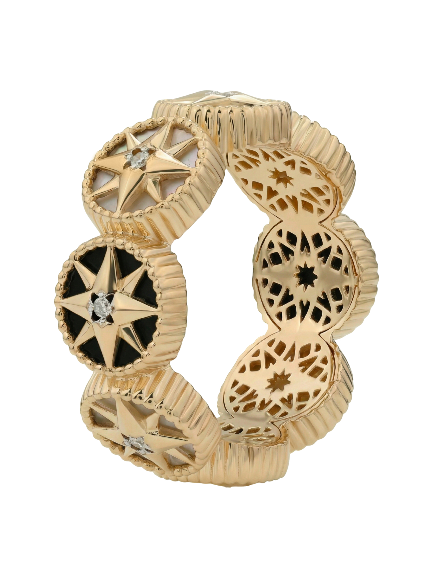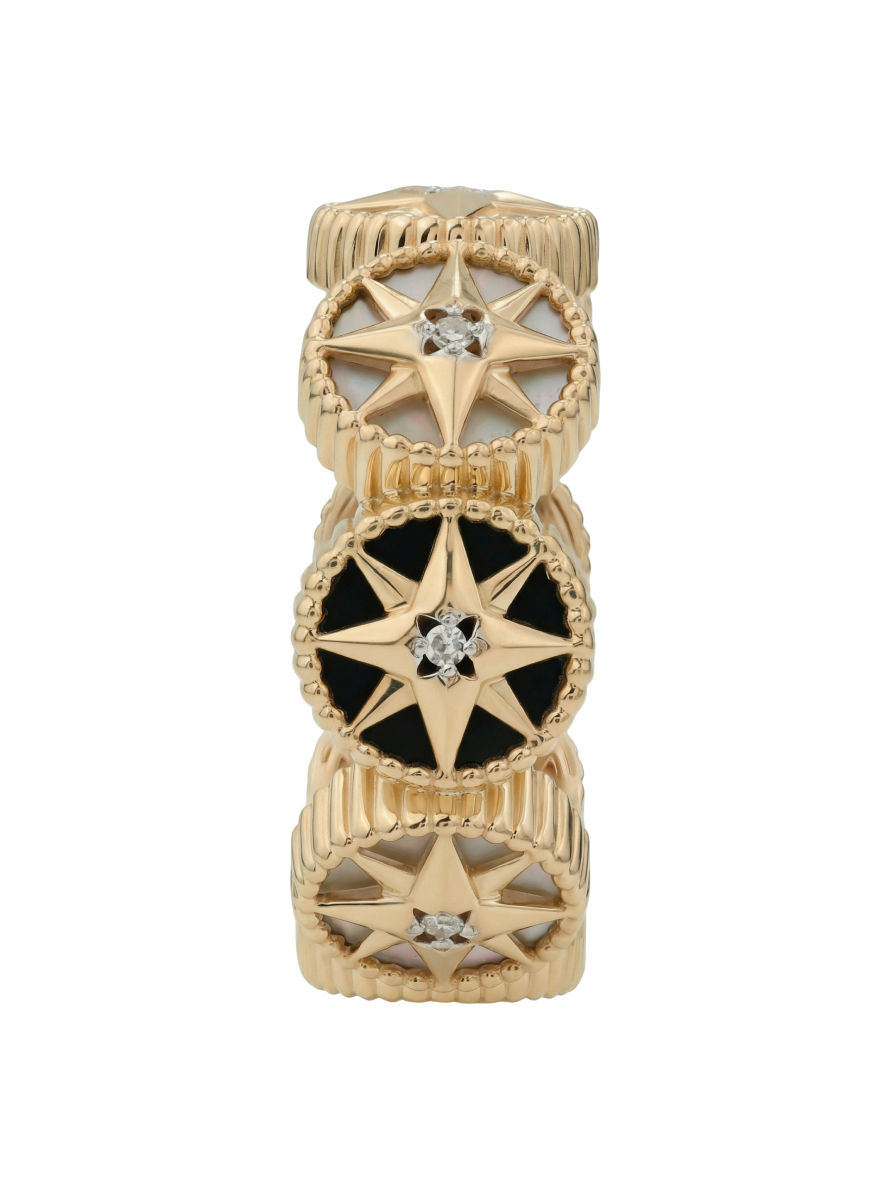 Кольцо из золота c бриллиантами, ониксом и перламутром