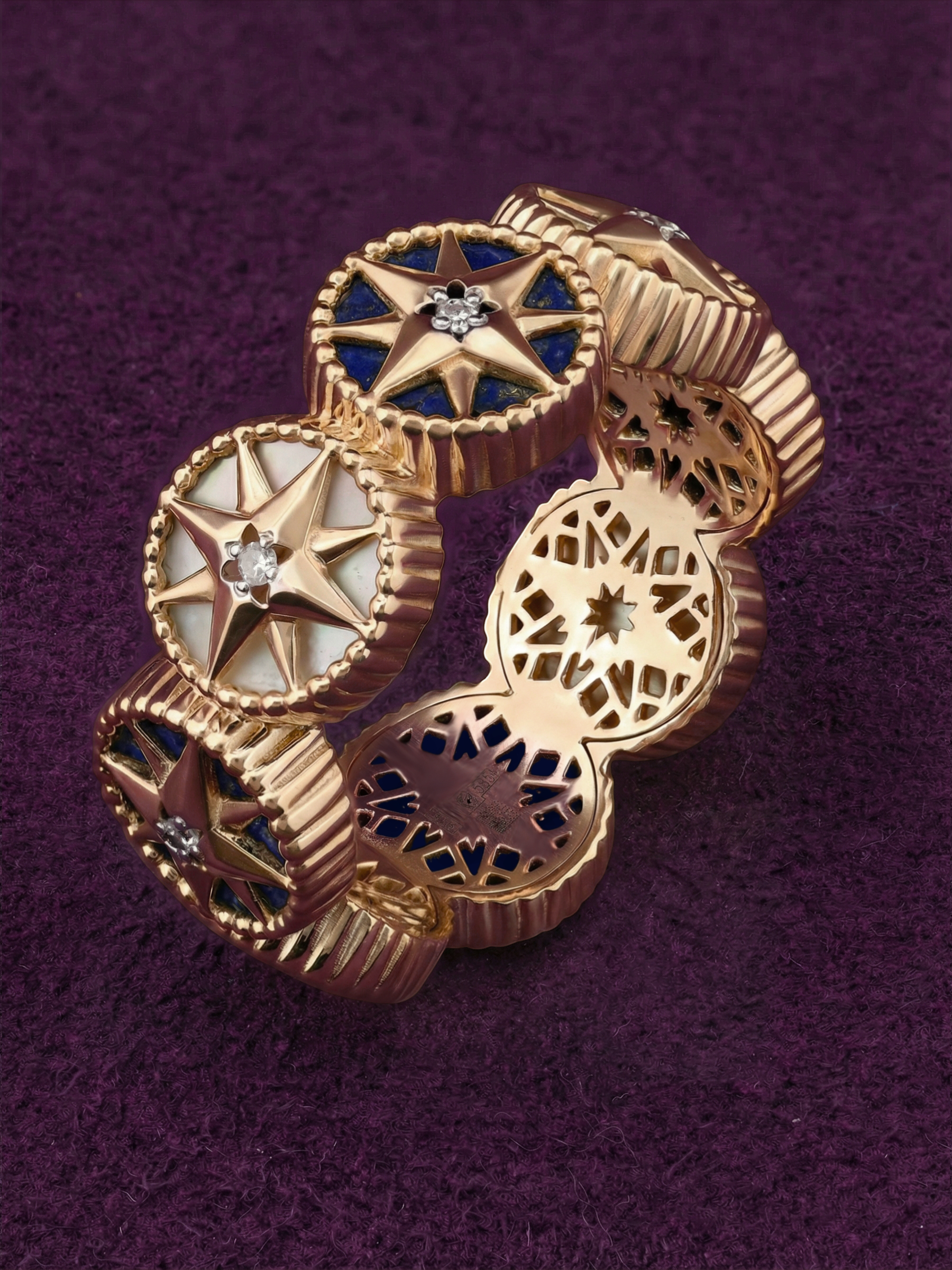 Кольцо из золота c бриллиантами, лазуритом и перламутром