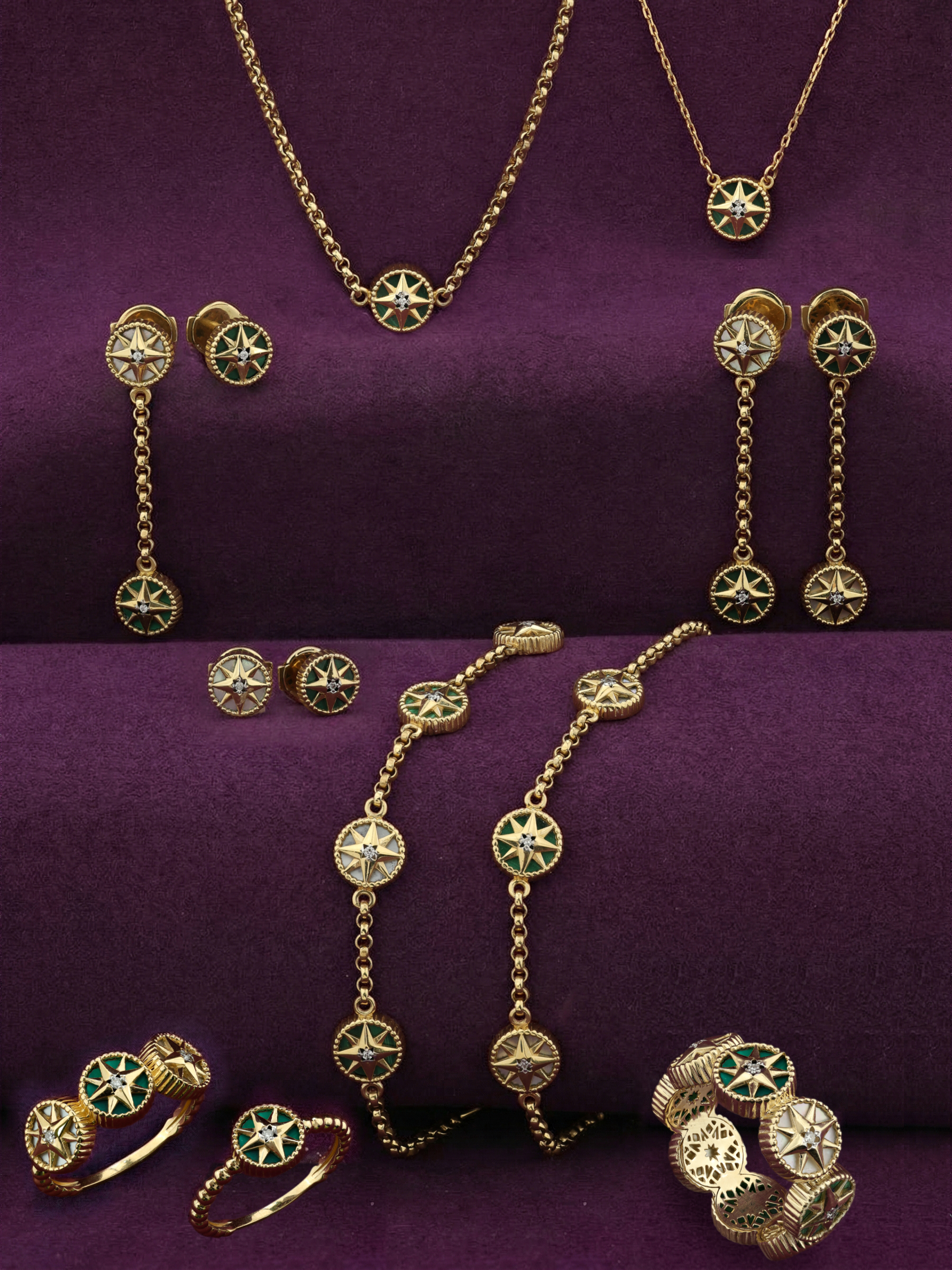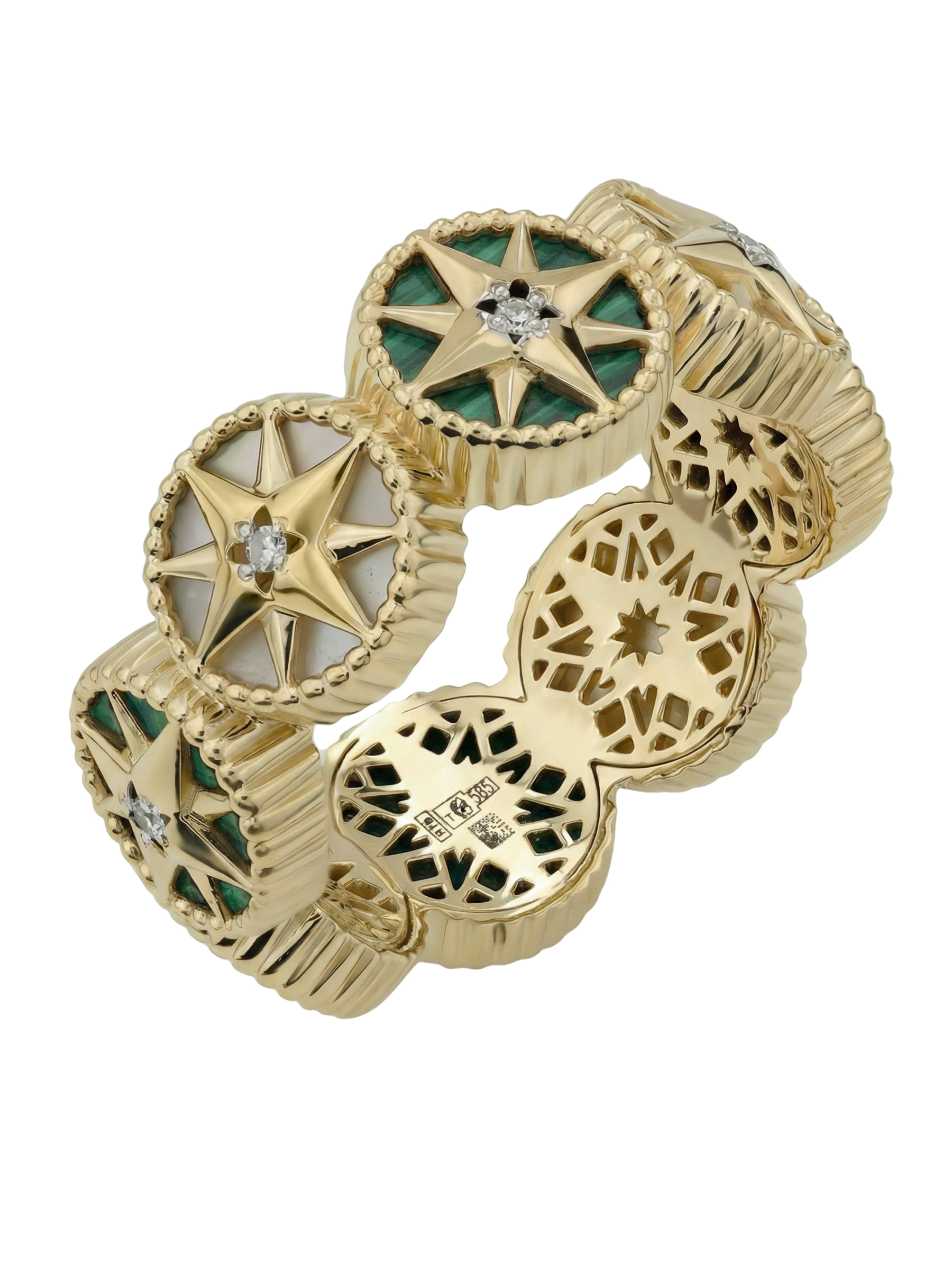 Кольцо из лимонного золота c бриллиантами, малахитом и перламутром