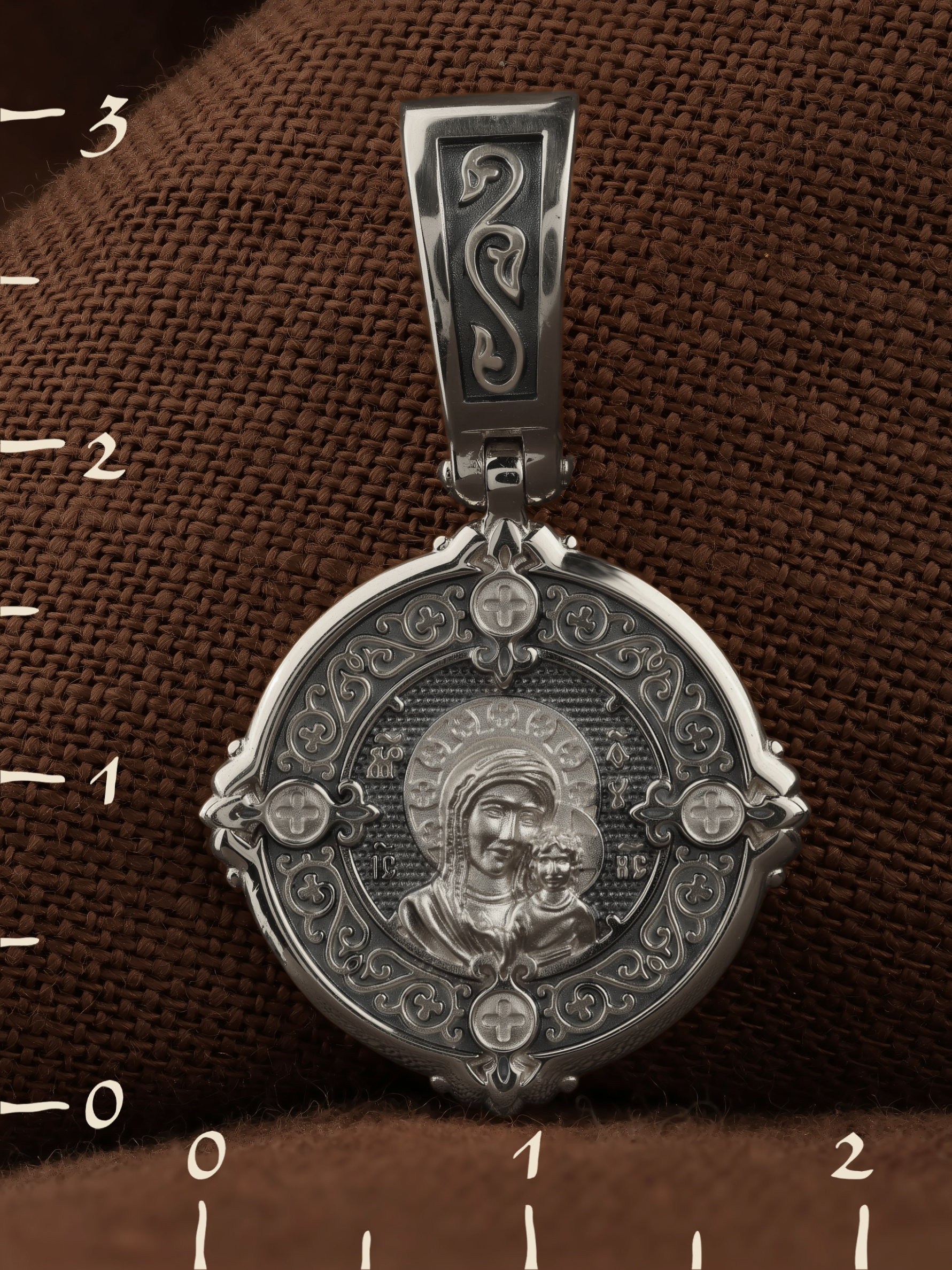На лицевой части образка изображена Казанская икона Пресвятой Богородицы — одна из самых почитаемых в России чудотворных икон Богородицы. Богословское значение Казанской иконы — указать верующим истинный Путь к спасению, который лежит через Христа. Только Божия Матерь имеет настолько сильное дерзновение к Спасителю, что может ходатайствовать перед Ним за всех верных. Именно этот образ дарится новой повенчанной паре, как хранитель очага и семейная реликвия. Молитва перед Казанской иконой Божьей Матери помогает во всех сложных случаях жизни, в болезнях, во всех печалях, невзгодах, скорбях. Уникальная история появления, чудеса, случившиеся по молитвам православных людей возле образа — все это делает Казанскую Богородицу особенной, среди тысяч других икон.