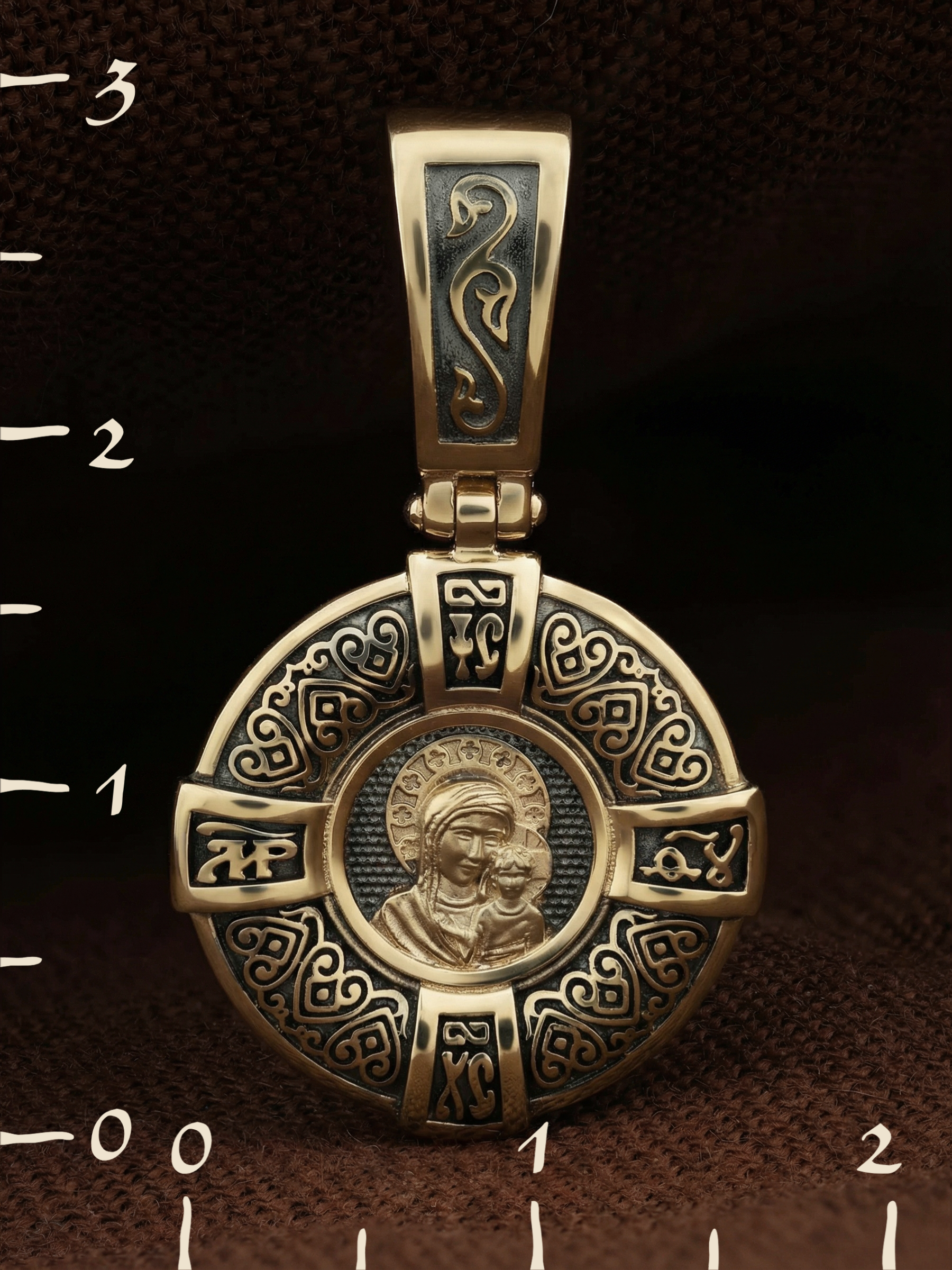 На лицевой части образка изображена Казанская икона Пресвятой Богородицы — одна из самых почитаемых в России чудотворных икон Богородицы. Богословское значение Казанской иконы — указать верующим истинный Путь к спасению, который лежит через Христа. Только Божия Матерь имеет настолько сильное дерзновение к Спасителю, что может ходатайствовать перед Ним за всех верных. Именно этот образ дарится новой повенчанной паре, как хранитель очага и семейная реликвия. Молитва перед Казанской иконой Божьей Матери помогает во всех сложных случаях жизни, в болезнях, во всех печалях, невзгодах, скорбях. Уникальная история появления, чудеса, случившиеся по молитвам православных людей возле образа — все это делает Казанскую Богородицу особенной, среди тысяч других икон.