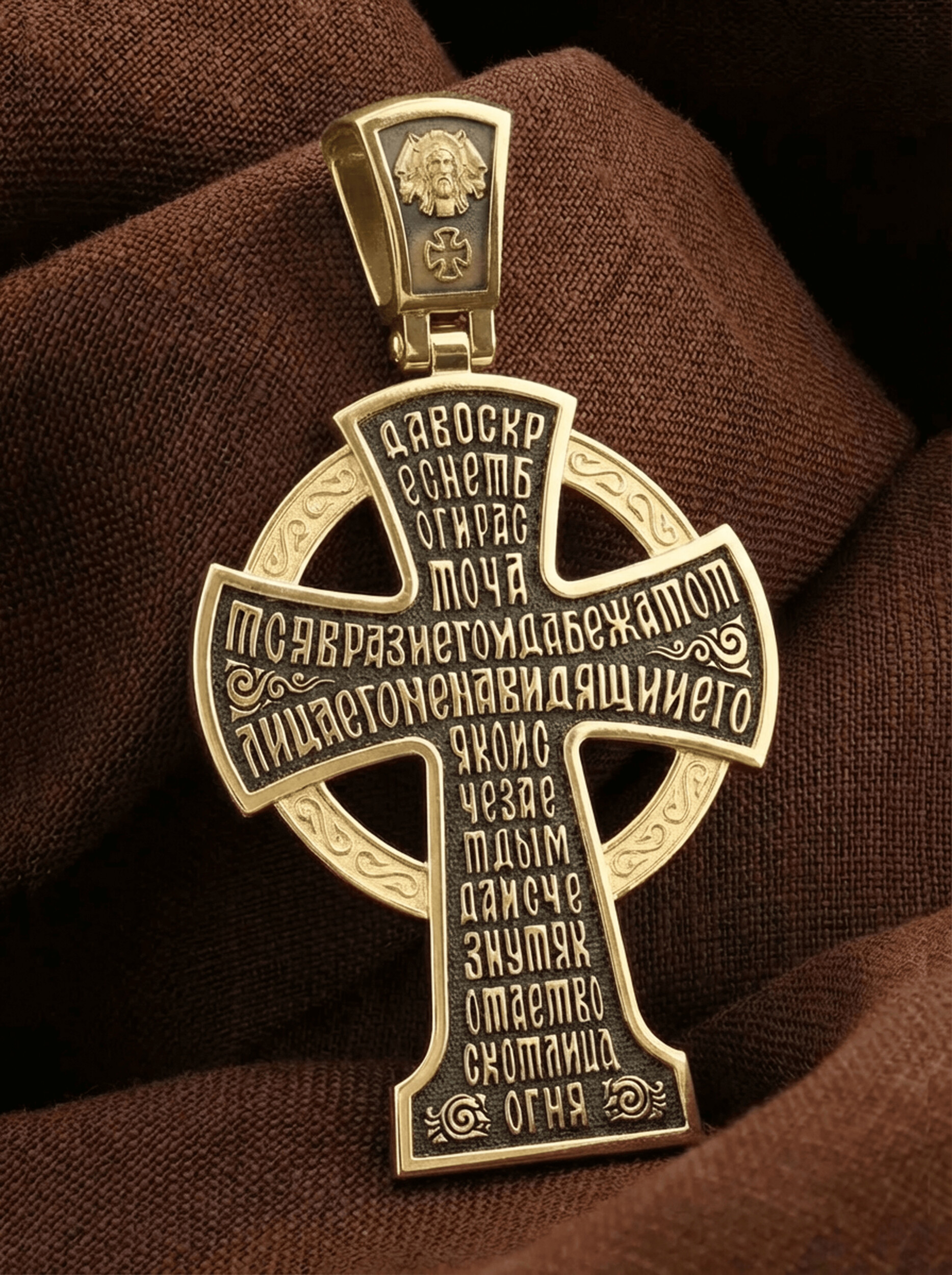 На обороте написан начальный стих оградительной молитвы Честному Кресту Господню: «Да воскреснет Бог, и расточатся врази Его, и да бежат от лица Его ненавидящии Его. Яко исчезает дым, да исчезнут; яко тает воск от лица огня, тако да погибнут беси от лица любящих Бога и знаменующихся крестным знамением, и в веселии глаголющих: радуйся, Пречестный и Животворящий Кресте Господень, прогоняй бесы силою на тебе пропятаго Господа нашего Иисуса Христа, во ад сшедшаго и поправшаго силу диаволю, и даровавшаго нам тебе Крест Свой Честный на прогнание всякаго супостата. О, Пречестный и Животворящий Кресте Господень! Помогай ми со Святою Госпожею Девою Богородицею и со всеми святыми во веки. Аминь».