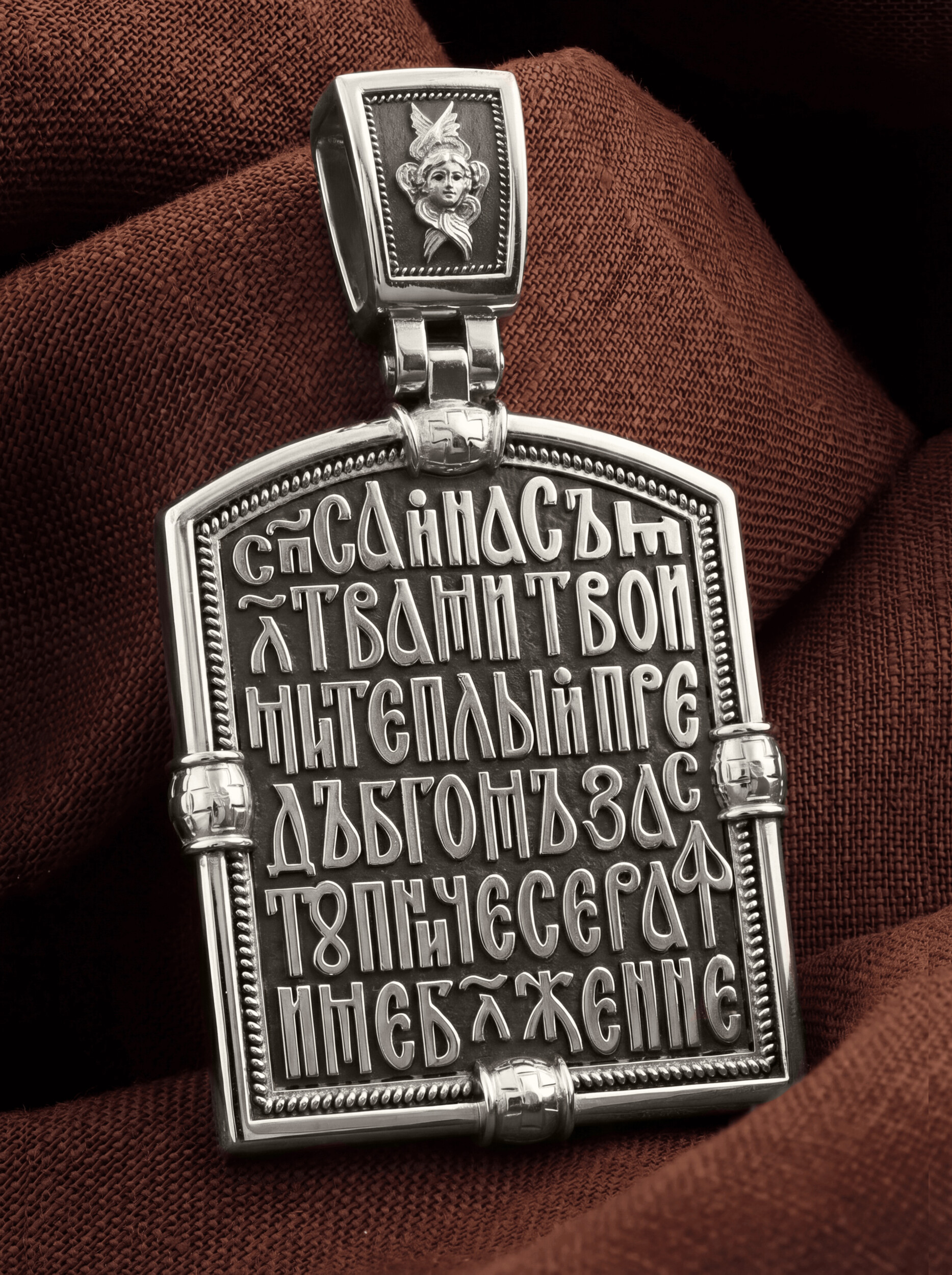 На лицевой стороне образка изображен Преподобный Серафим Саровский, самый великий русский святой XIX века. Преподобный Серафим почитается за особую милостивую любовь к людям и неоскудевающую помощь во всяких делах.