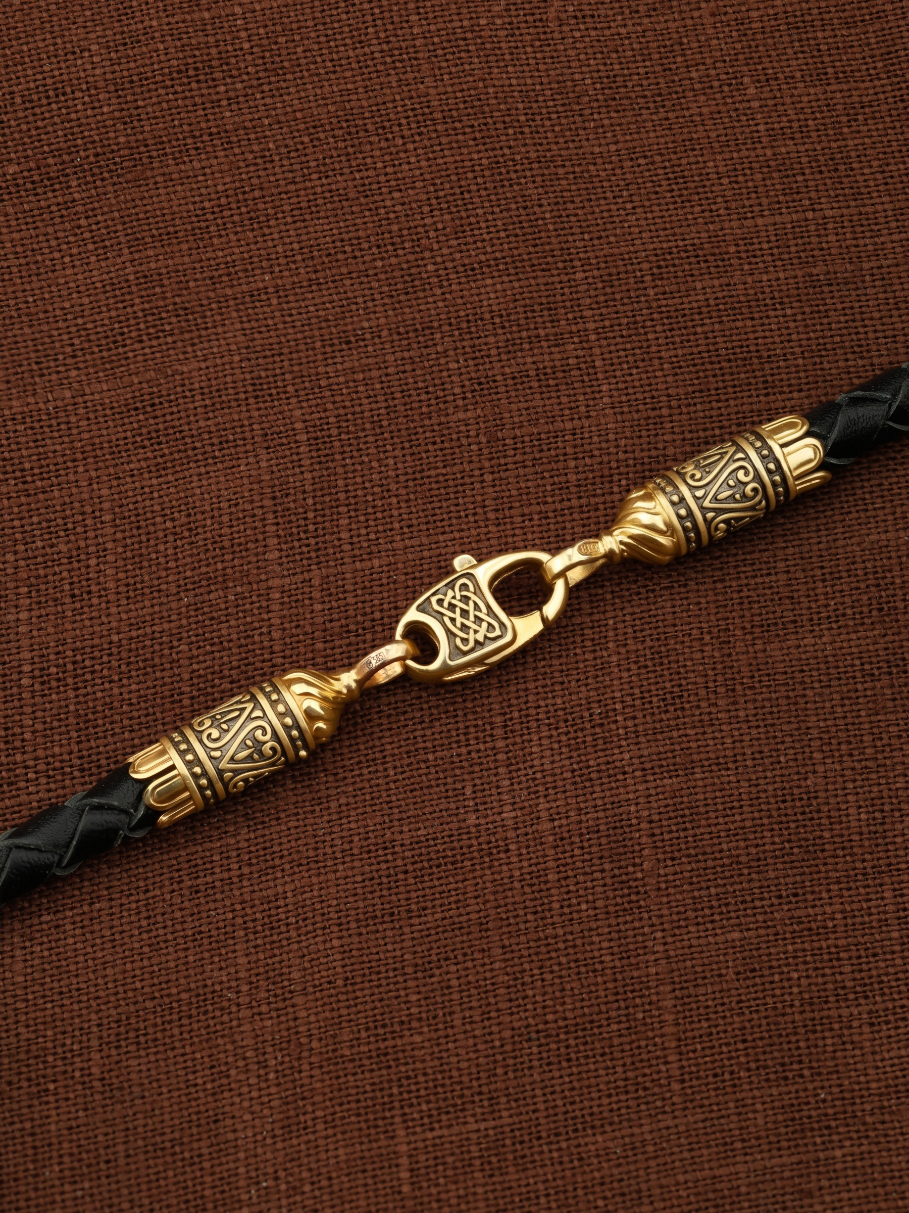 Гайтан из лимонного золота c кожаным шнурком