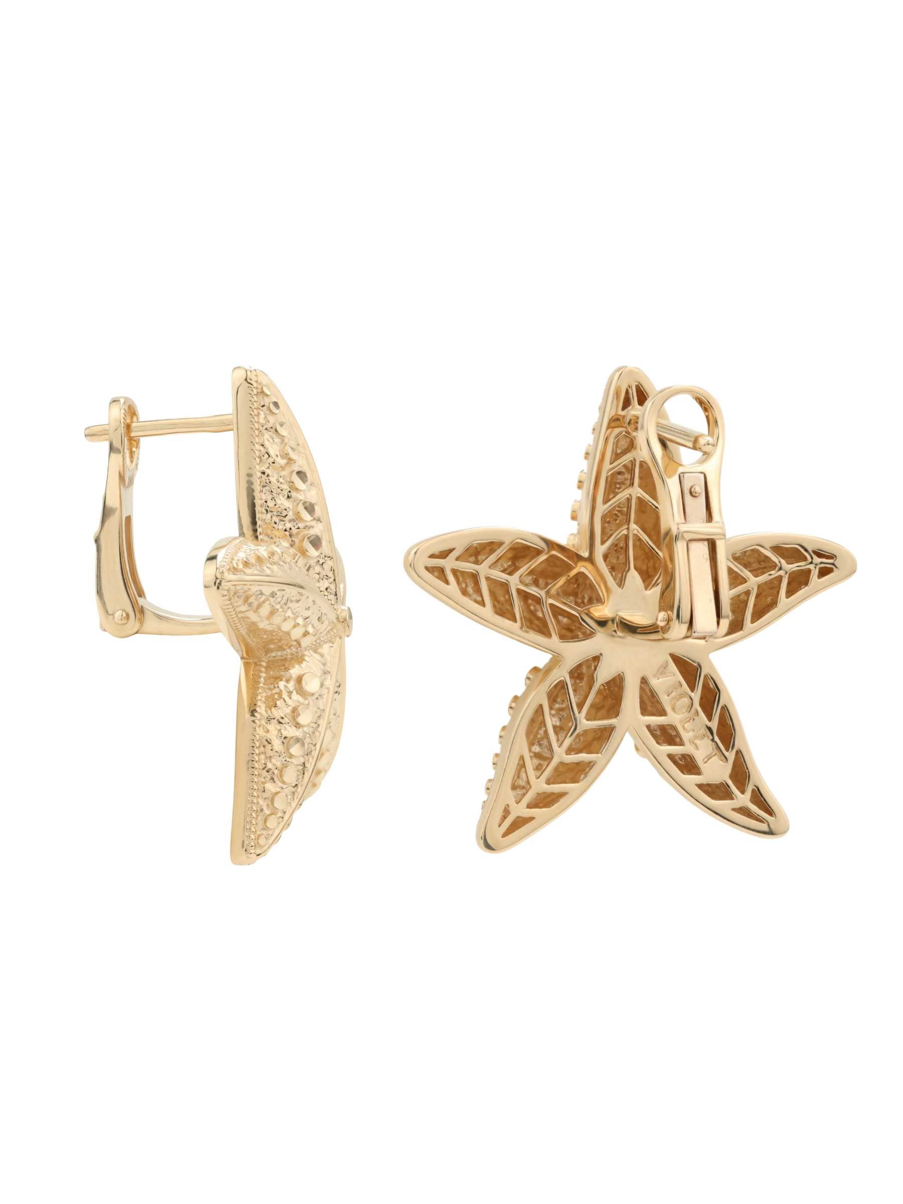 Серьги из красного золота 585 пробы из коллекции Vioretty — Oceano — это яркое и стильное украшение, воплощающее эстетику морской тематики. Дизайн изделия в форме морской звезды привлекает внимание своей детализированной фактурой и игрой света на поверхности благородного металла. Тщательно проработанный рельеф создает эффект природной натуральности, превращая эти серьги в выразительный акцент любого образа.