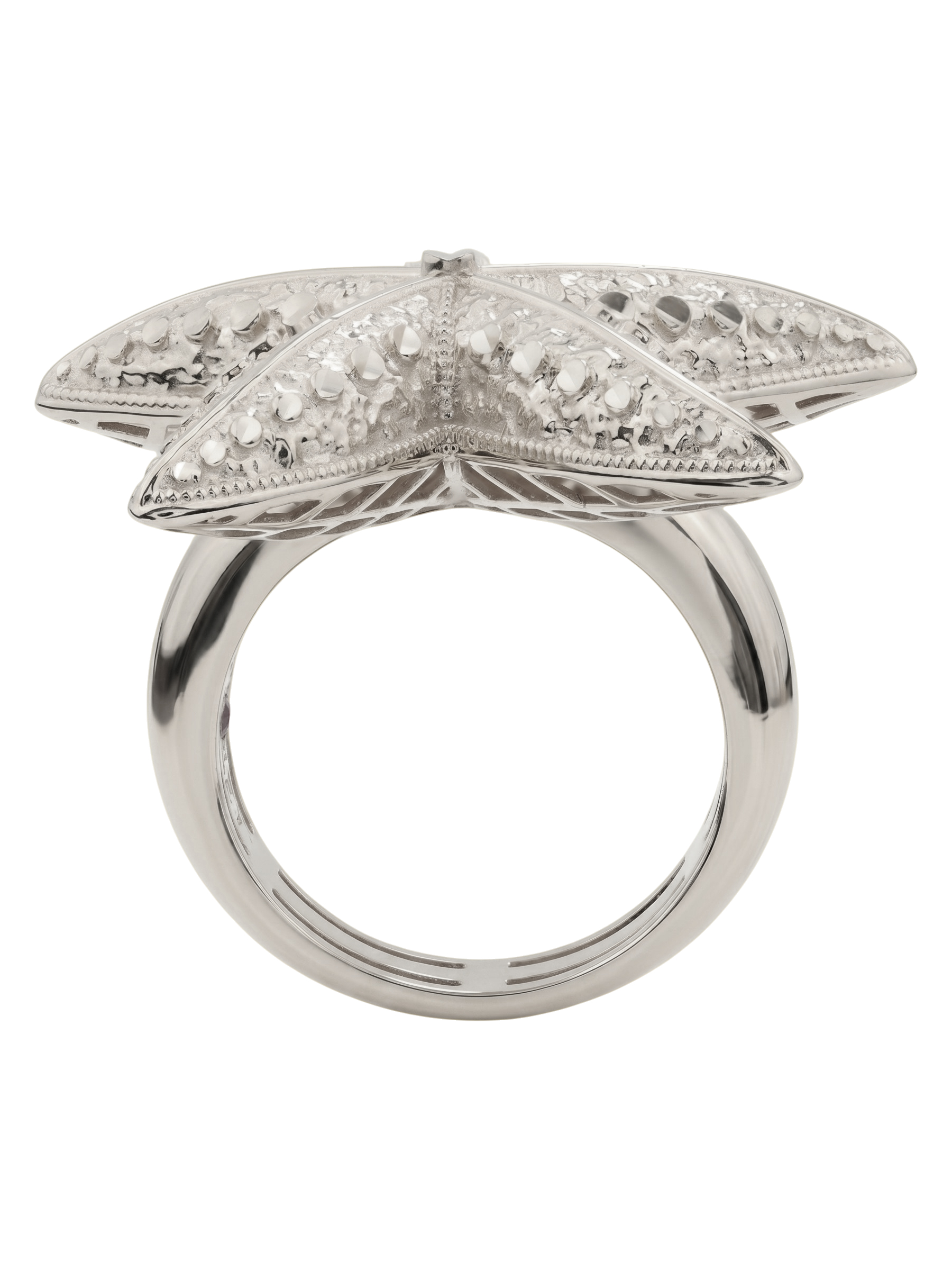 Кольцо из белого золота с рубином из коллекции Vioretty — Oceano — это ювелирный шедевр, воплощающий эстетику морских глубин. Дизайн украшения вдохновлен красотой морской звезды, что делает его настоящим арт-объектом, способным подчеркнуть индивидуальность своего владельца. Это эффектное кольцо создано для ценителей эксклюзивных аксессуаров, которые стремятся выделяться в любой обстановке.