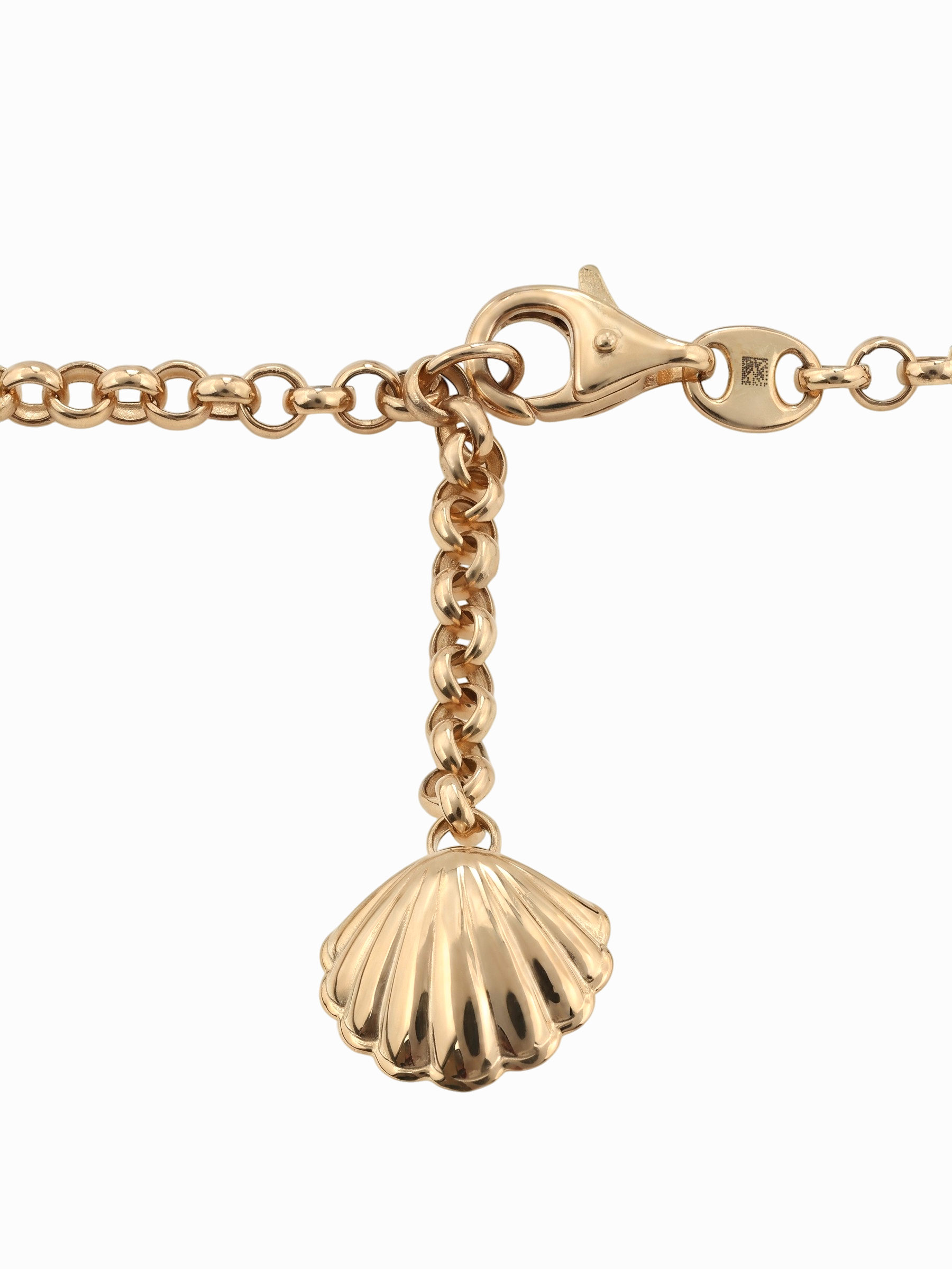 Колье из красного золота 585 пробы — это изысканное ювелирное украшение, которое станет центральным акцентом вашего образа. Данная модель входит в линейку Vioretty — Oceano и вдохновлена эстетикой морских глубин, воплощенной в благородном металле. Центральным элементом украшения выступает изящная подвеска в виде стилизованной раковины, детализация которой подчеркивает высокое мастерство исполнения. Дополнительный шарм изделию придают миниатюрные декоративные элементы в форме спиралевидных ракушек, гармонично интегрированные в цепочку.
