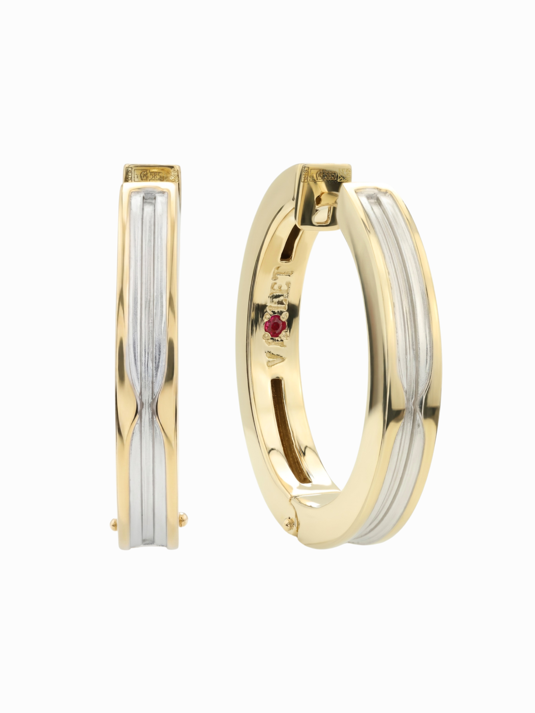 Конструкция изделия отличается продуманной геометрией, где гладкие линии лимонного золота создают безупречный визуальный объем. Эти универсальные серьги подходят как для женщин, так и для мужчин, что делает их прекрасным примером современной ювелирной унисекс-эстетики. Каждая пара включает 2 рубина, которые придают украшению особенный характер. Изделие гармонично впишется в ваш личный стиль или станет центральным элементом в коллекции Vioretty — DEMETRA, позволяя создавать элегантные ювелирные комплекты. Надежный замок обеспечивает комфорт при повседневном ношении, сохраняя при этом целостность формы и дизайна. Выбирая данные серьги, вы делаете ставку на премиальное качество материалов и актуальный дизайн, который остается вне времени.