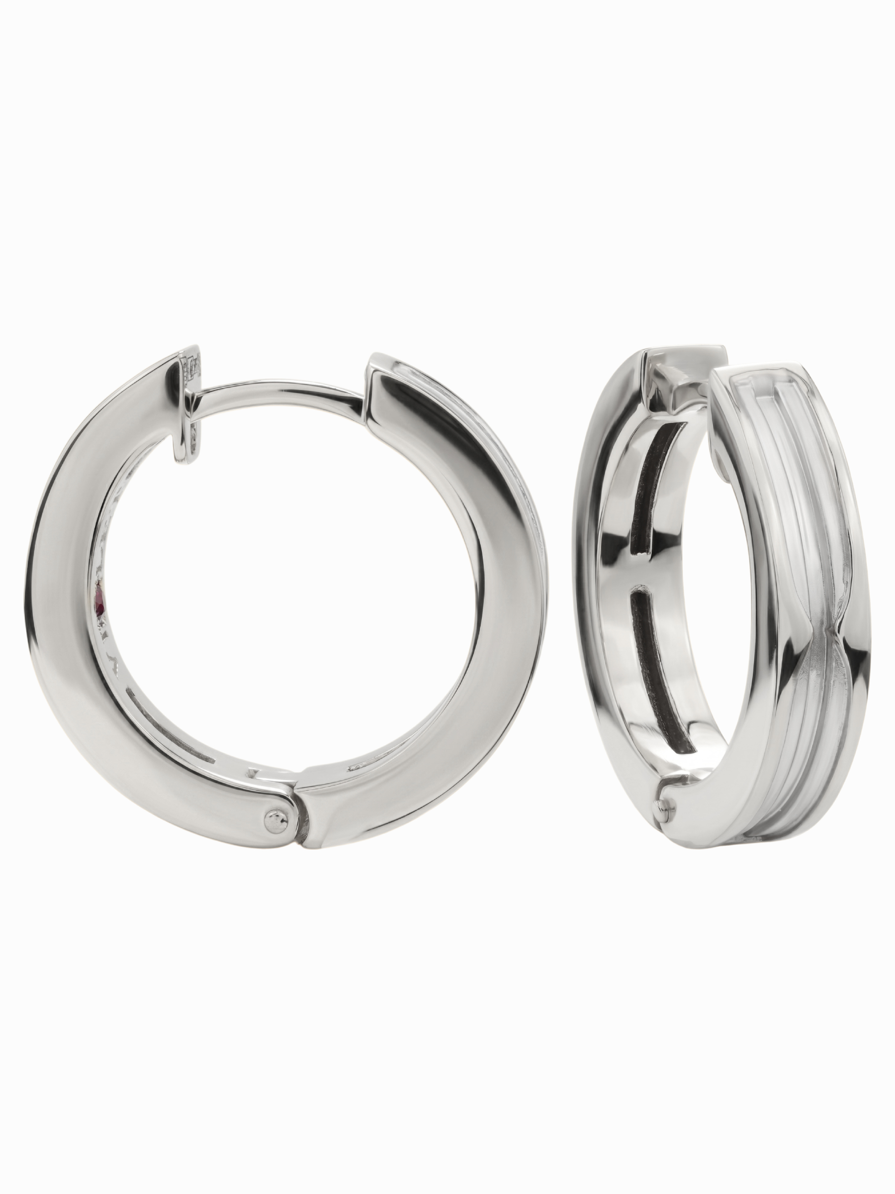 Особенностью модели является интригующая деталь: две вставки из красного рубина круглой формы расположены так, что они создают уникальный визуальный эффект, заметный при близком рассмотрении. Это универсальный аксессуар, который гармонично дополнит как строгий деловой костюм, так и вечерний образ. Серьги из белого золота с рубином подходят как для женщин, так и для мужчин, ценящих минимализм с характером.