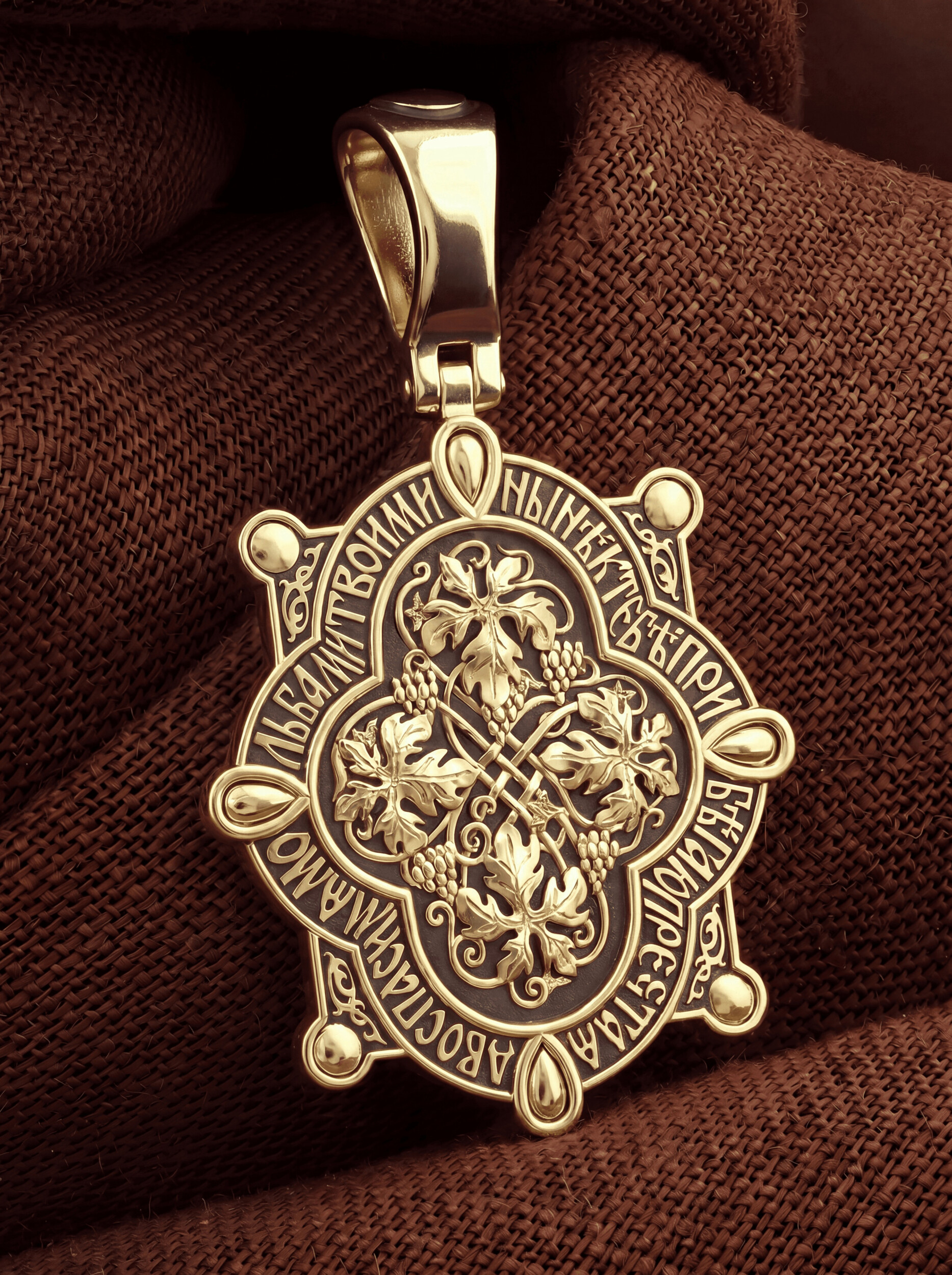 На оборотной стороне изображена виноградная лоза — символы церкви и евхаристии. «Я есмь лоза, — говорил Иисус Христос Своим ученикам, — а вы ветви; кто пребывает во Мне, и Я в нем, тот приносит много плода» (Ин. 15, 5), «Я есмь истинная виноградная лоза, а Отец Мой — виноградарь». Вокруг образка написана молитва Богородице: «Ныне к Тебе прибегаю, Пречистая Дево, спаси мя молитвами Твоими».