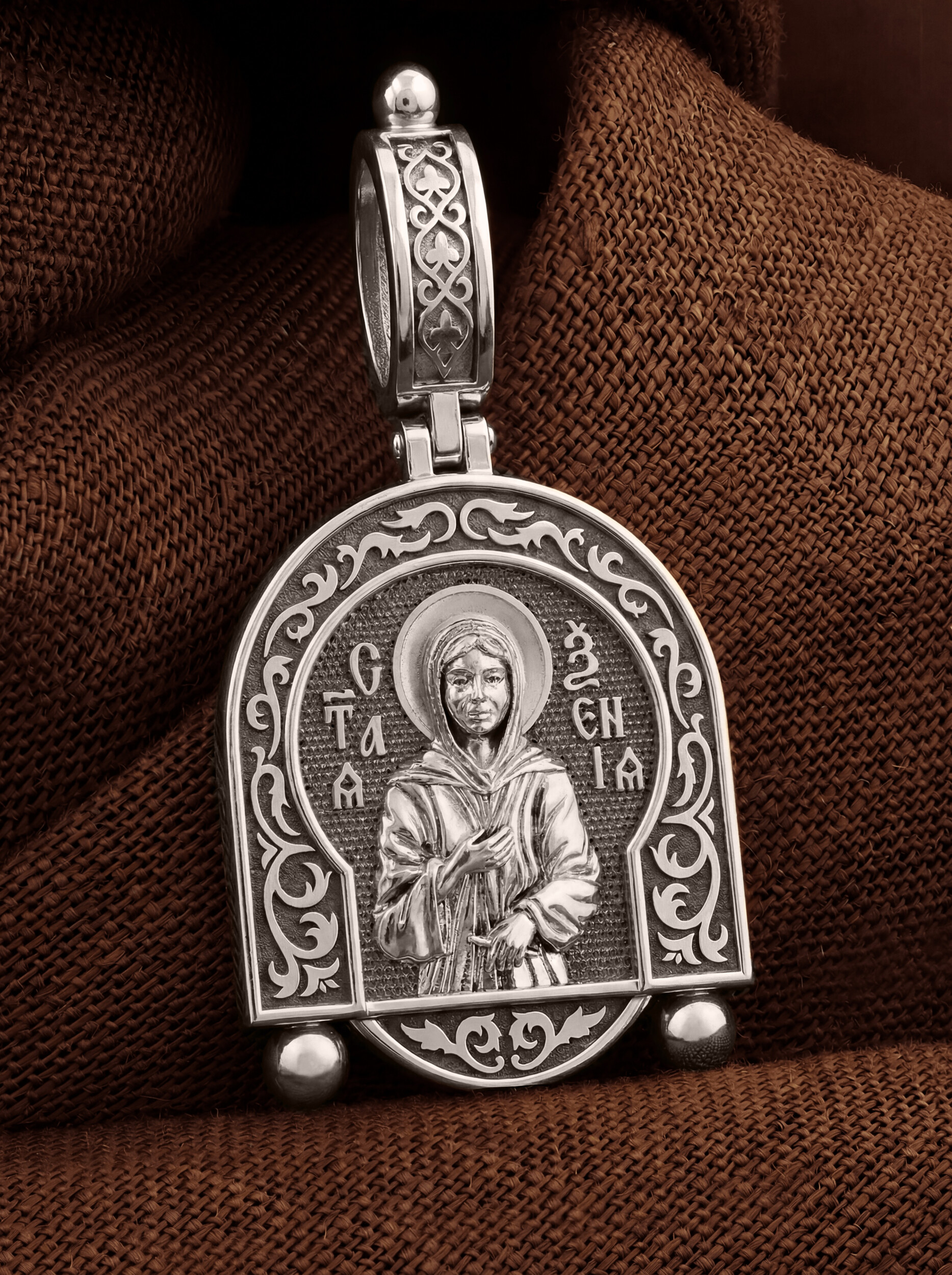 На лицевой стороне образка изображена Святая блаженная Ксения Петербургская, в миру Ксения Григорьевна Петрова.