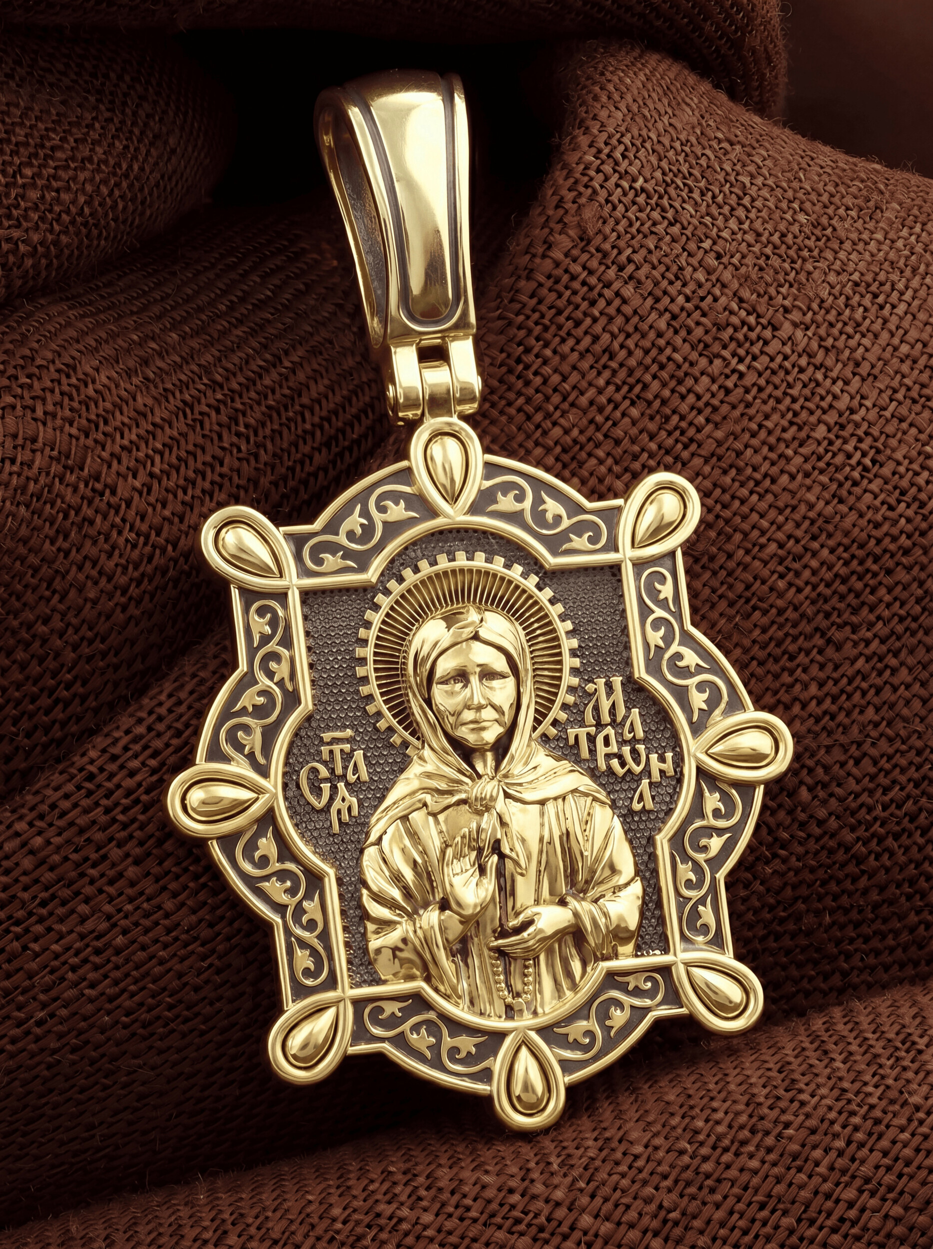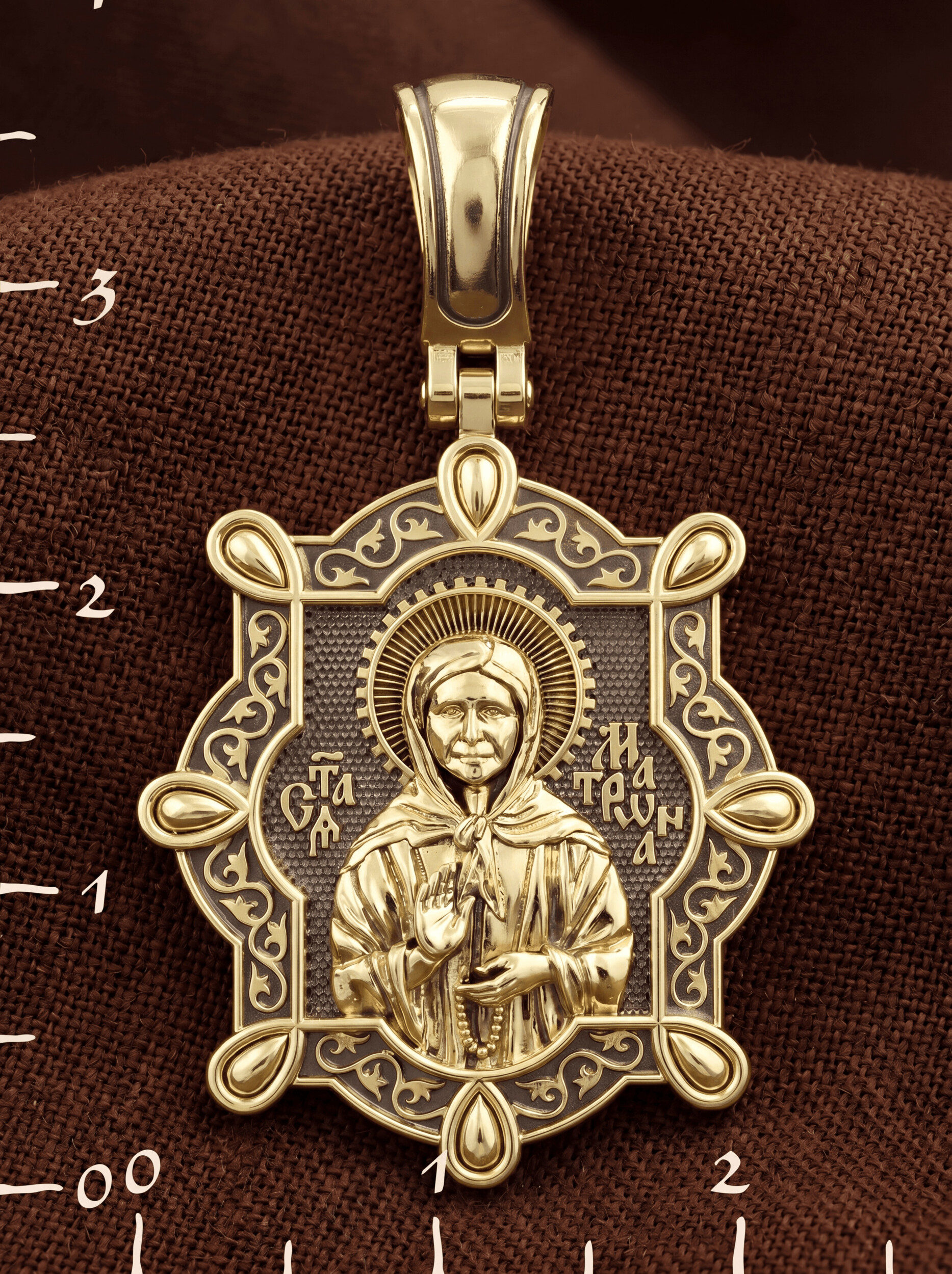 На лицевой стороне образка изображена Святая Матрона Московская.