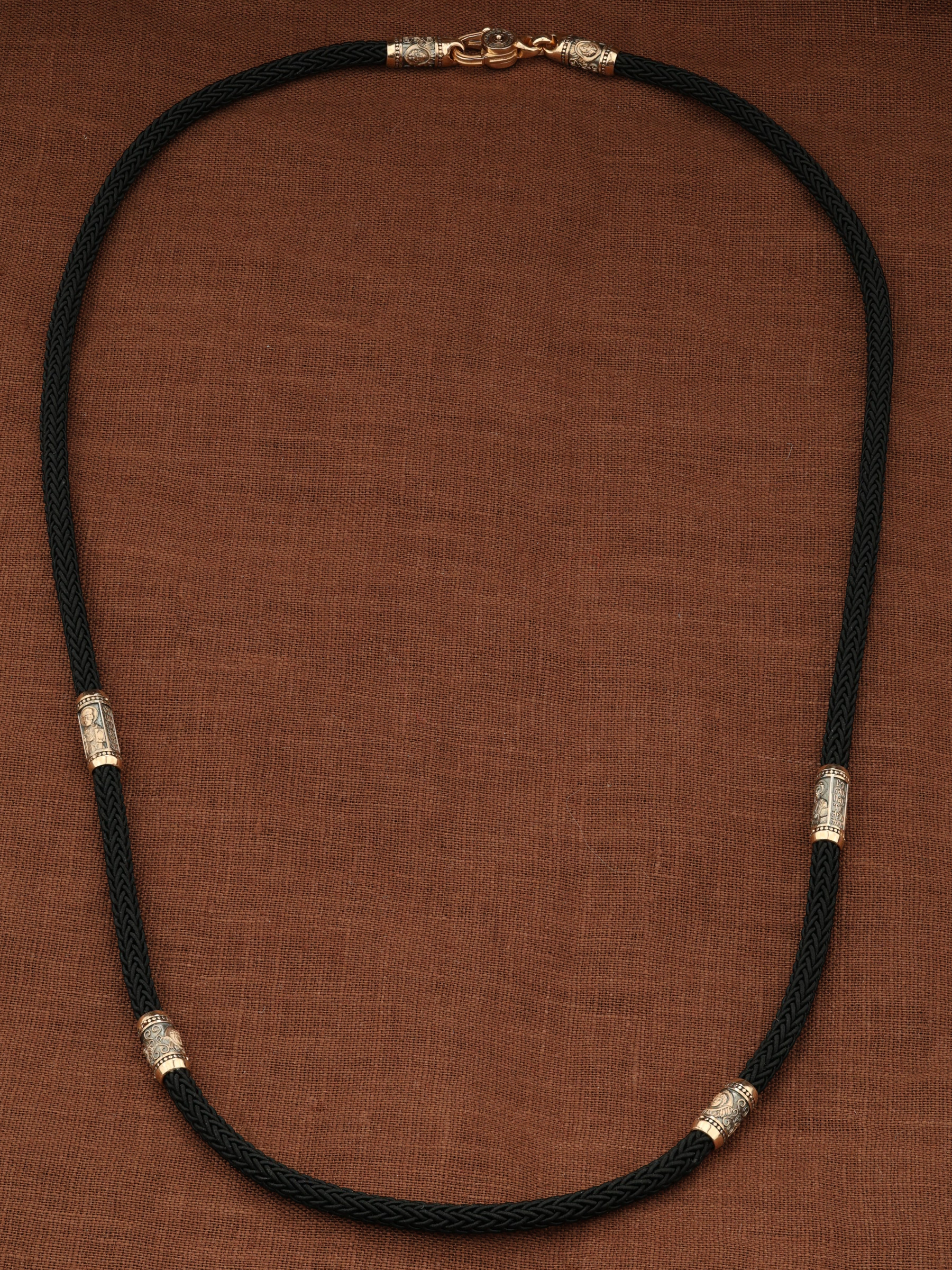 Шнурок шёлковый из золота 585 пробы c шёлковым шнурком