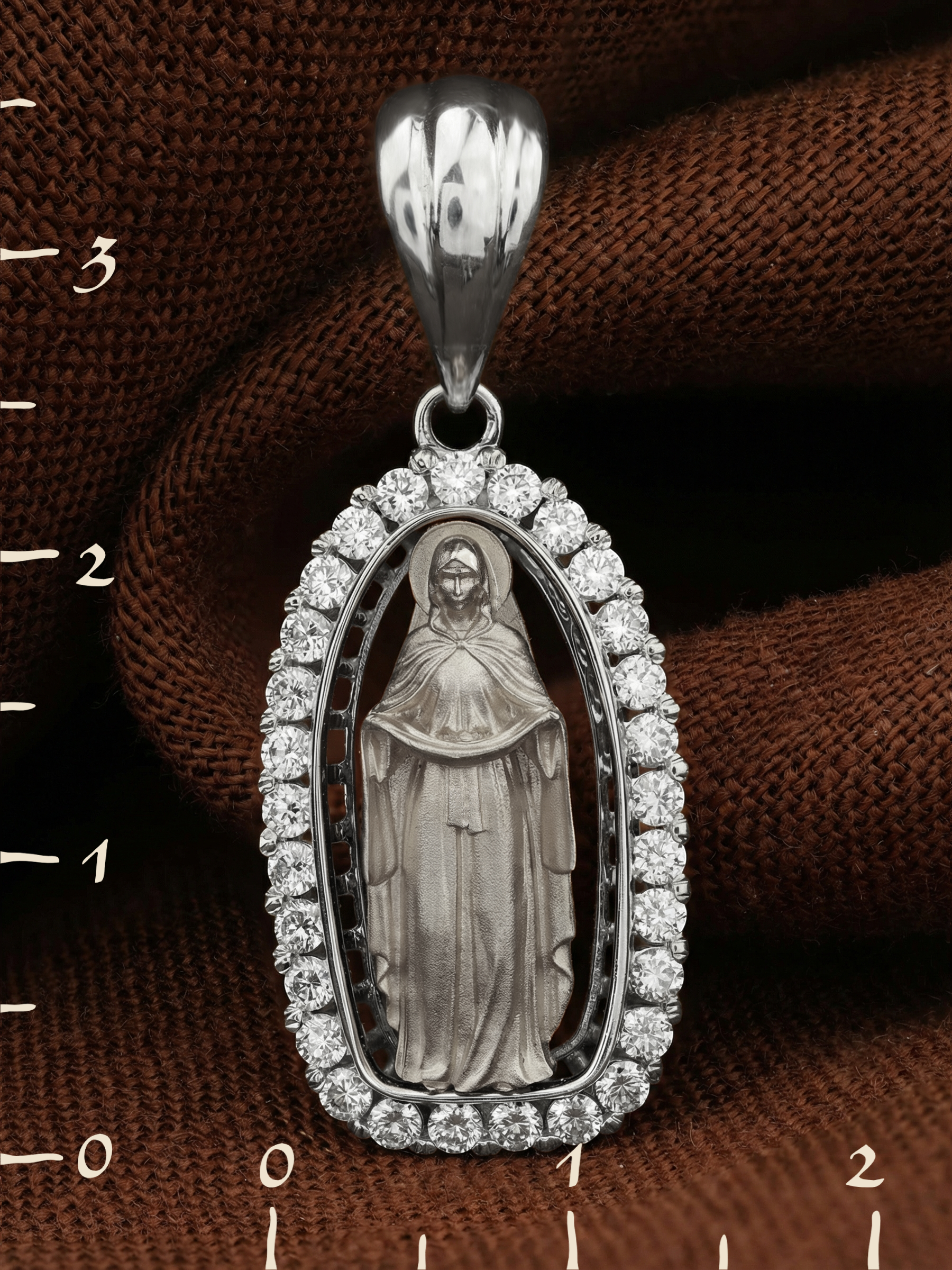 На лицевой части образка изображена икона Покров Пресвятой Богородицы. Праздник Покрова Божией Матери является воспоминанием чуда, которое произошло во Влахнернской церкви 1 (14) октября 910 года: Пресвятая Богородица явилась верующим над алтарем храма и распростерла над ними Свое покрывало. В этот день Божья Матерь открыла людям, что Она является Ходатаицей за них перед Богом. Богородица простирает Свой молитвенный покров над всеми православными христианами и умоляет Сына Своего о даровании вечного спасения каждому человеку.