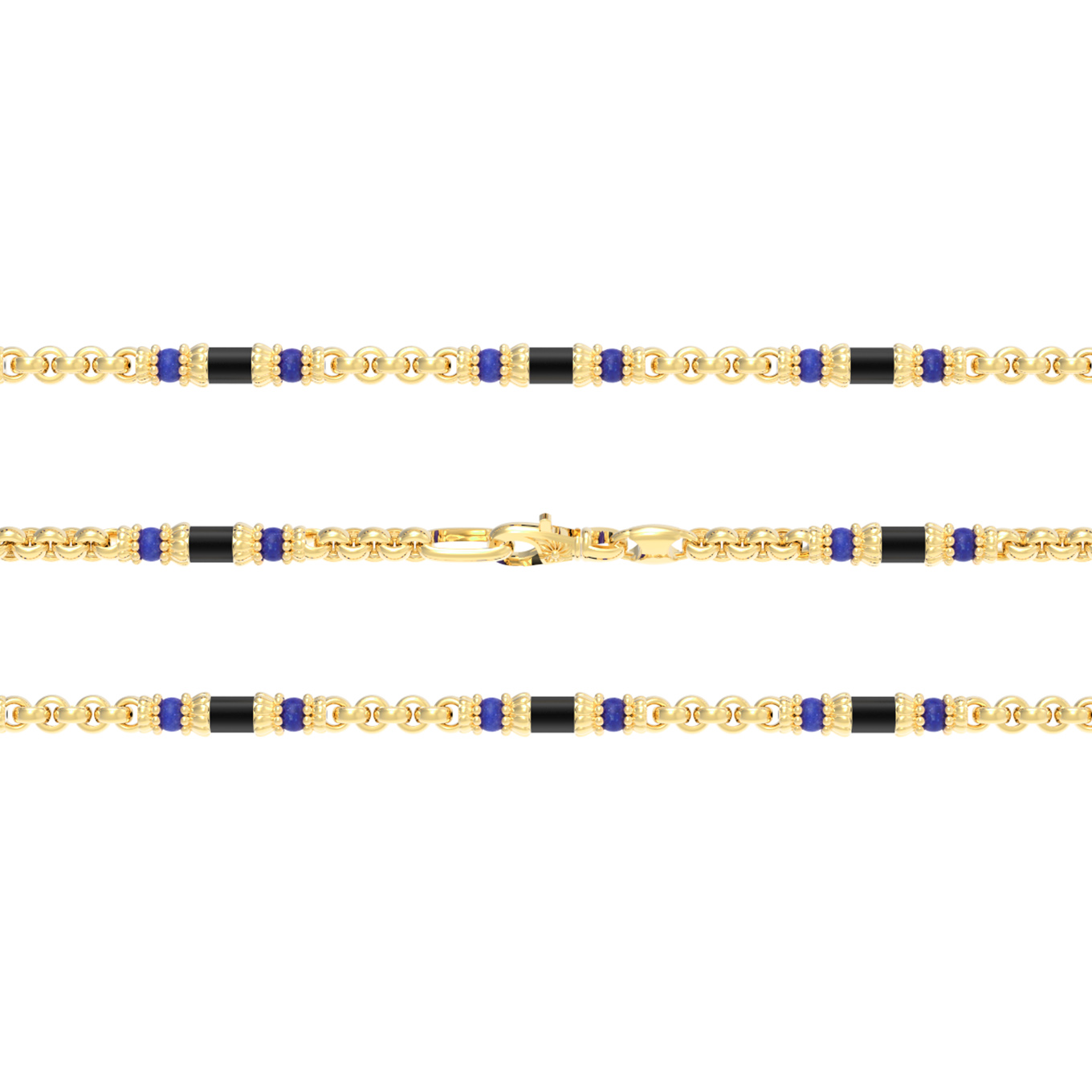 • Цепь из лимонного золота c ониксом и лазуритом