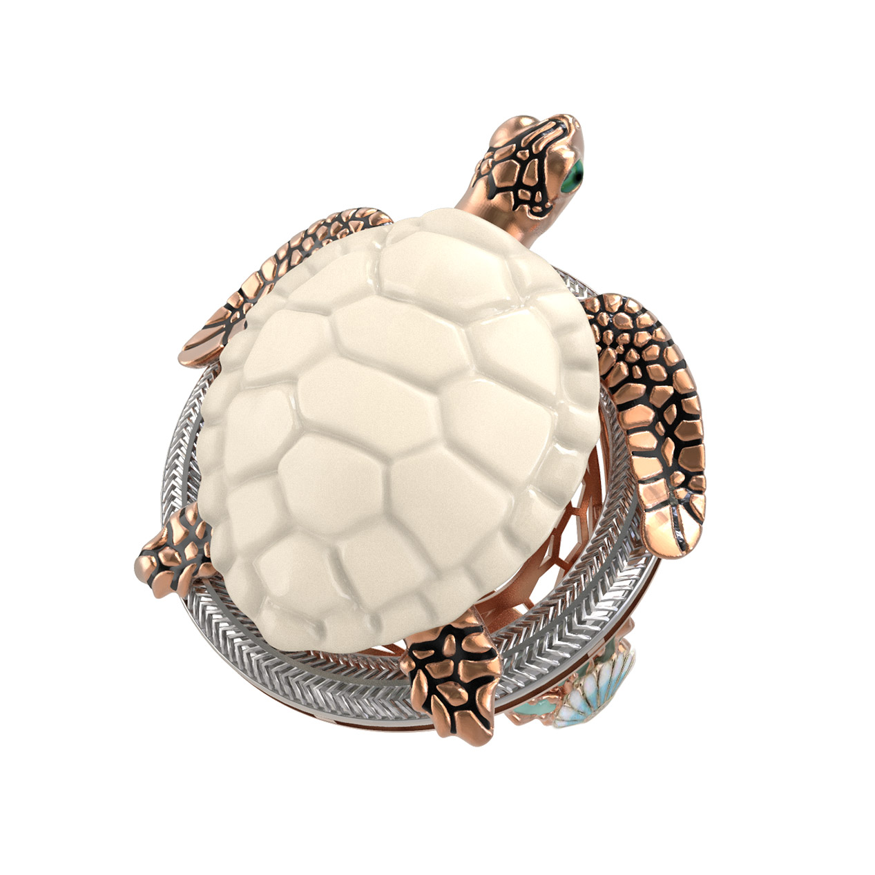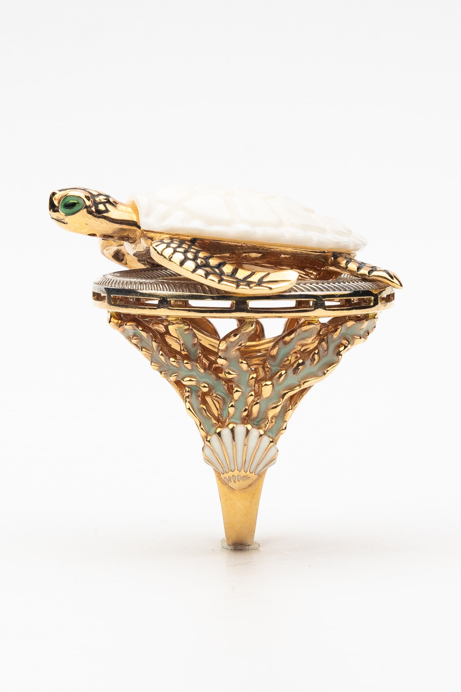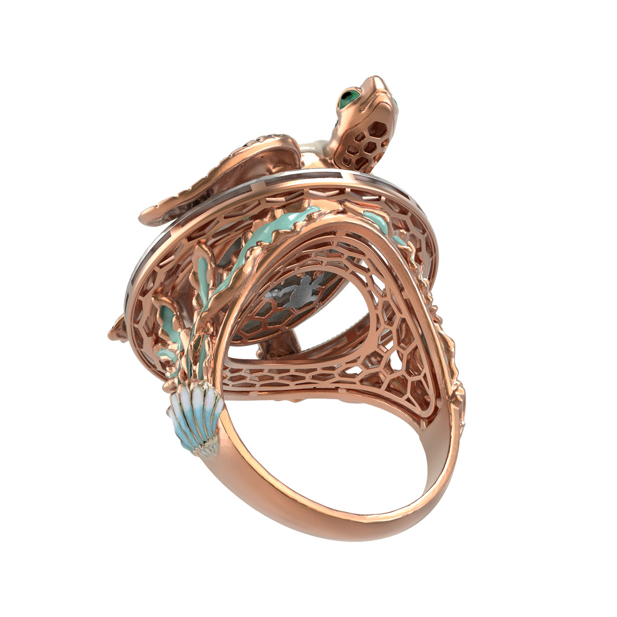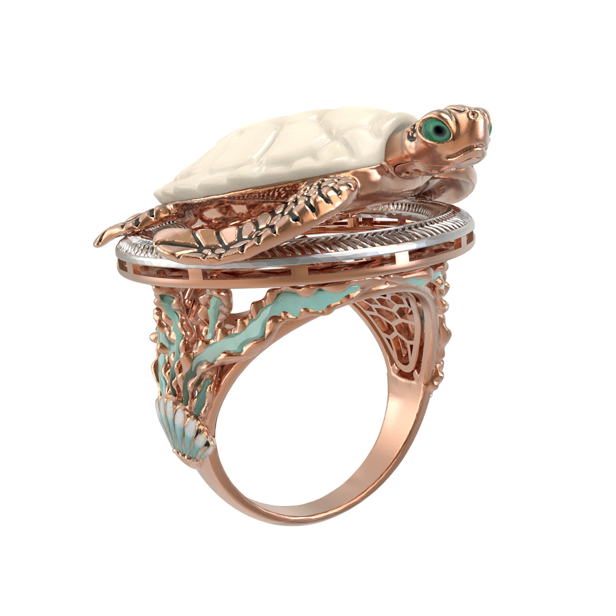 Кольцо из золота c эмаль и бивнем мамонта