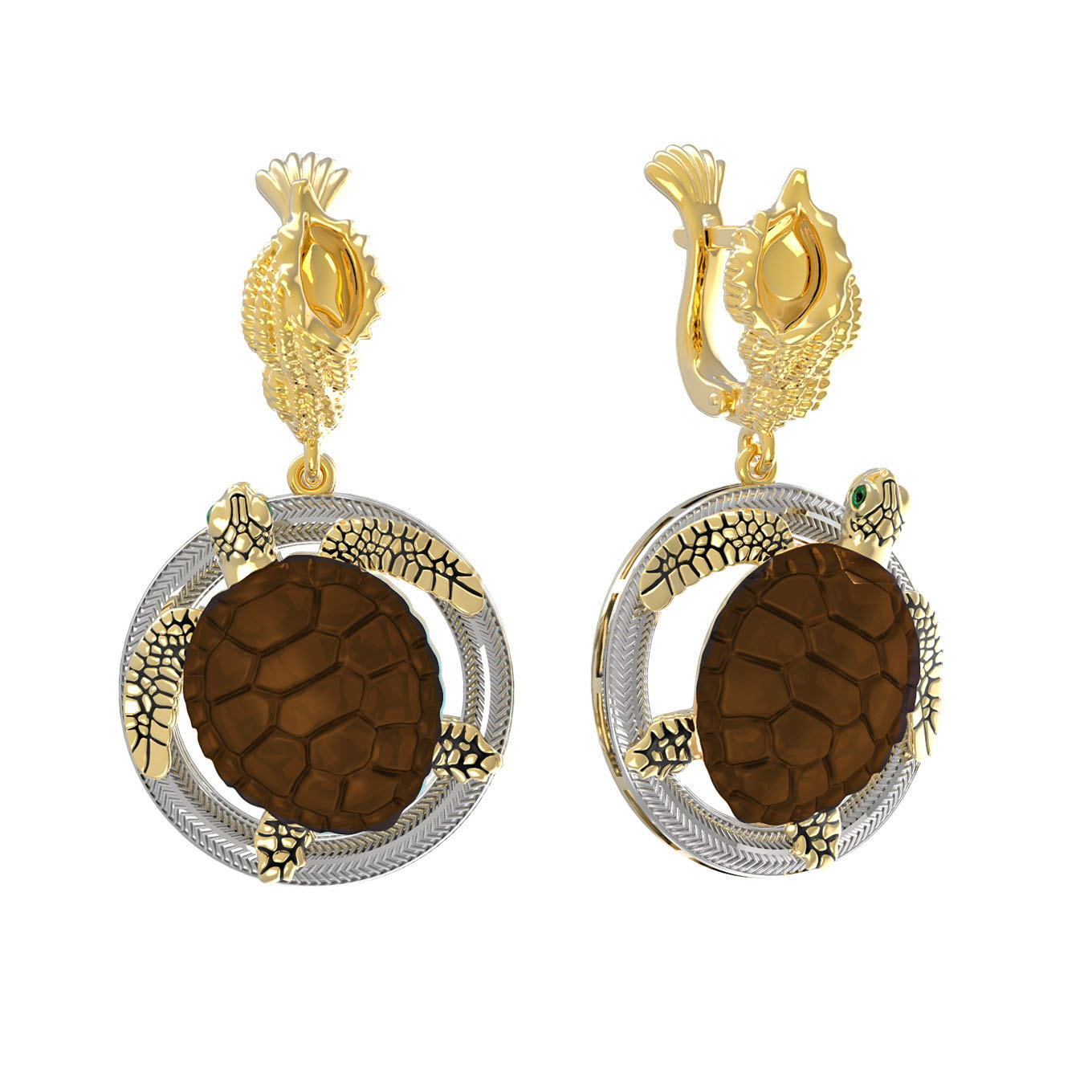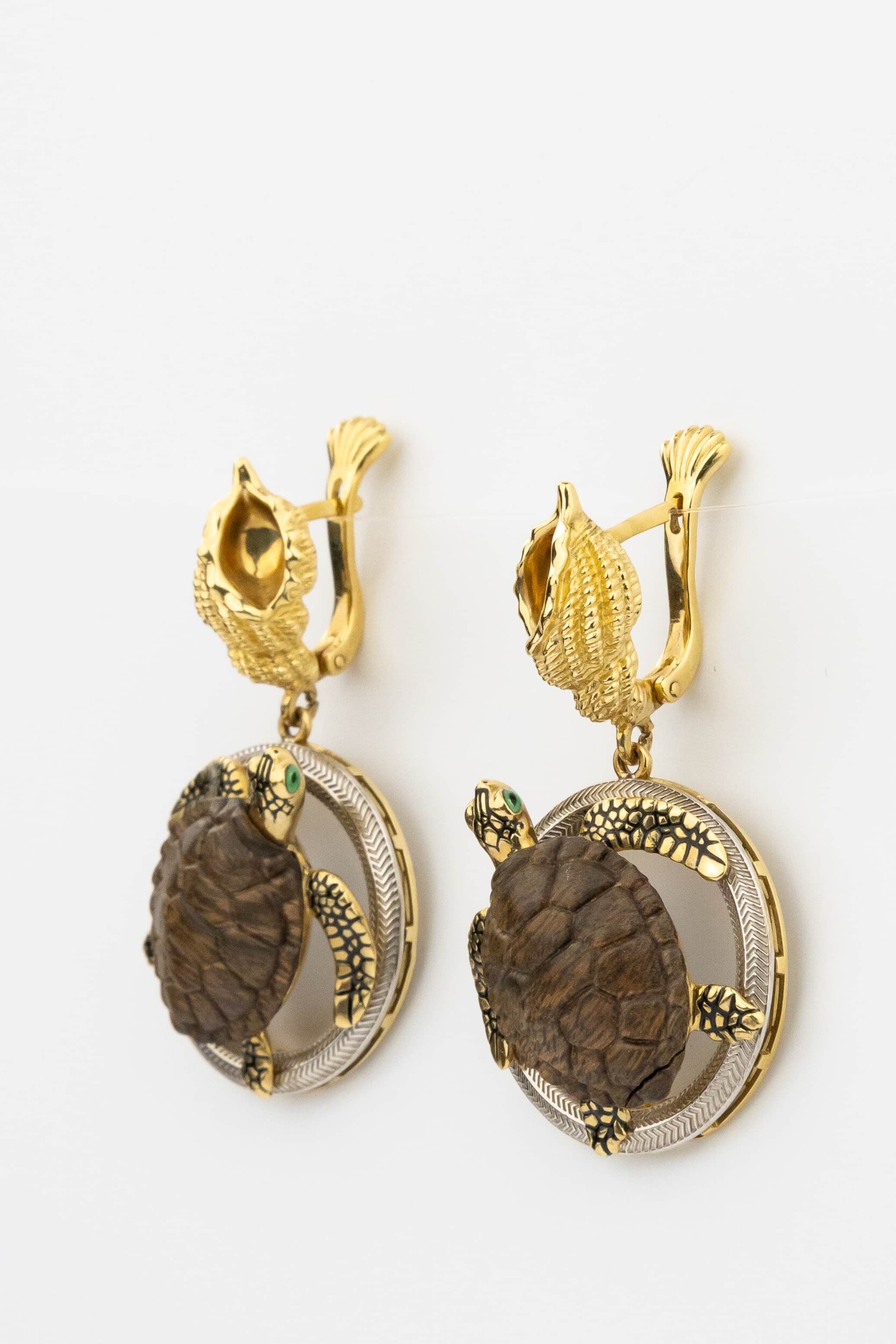 Серьги из лимонного золота c эмаль и железным деревом