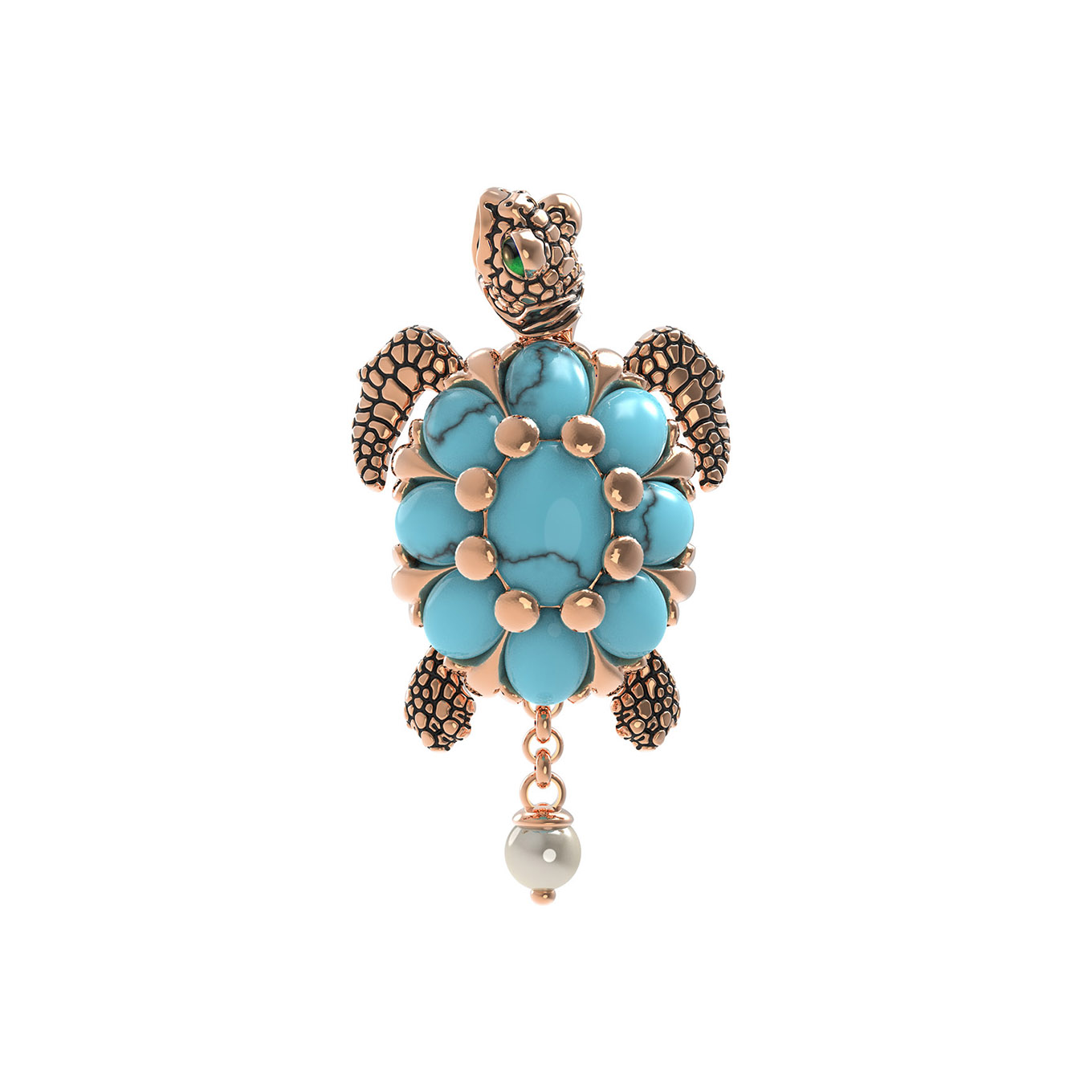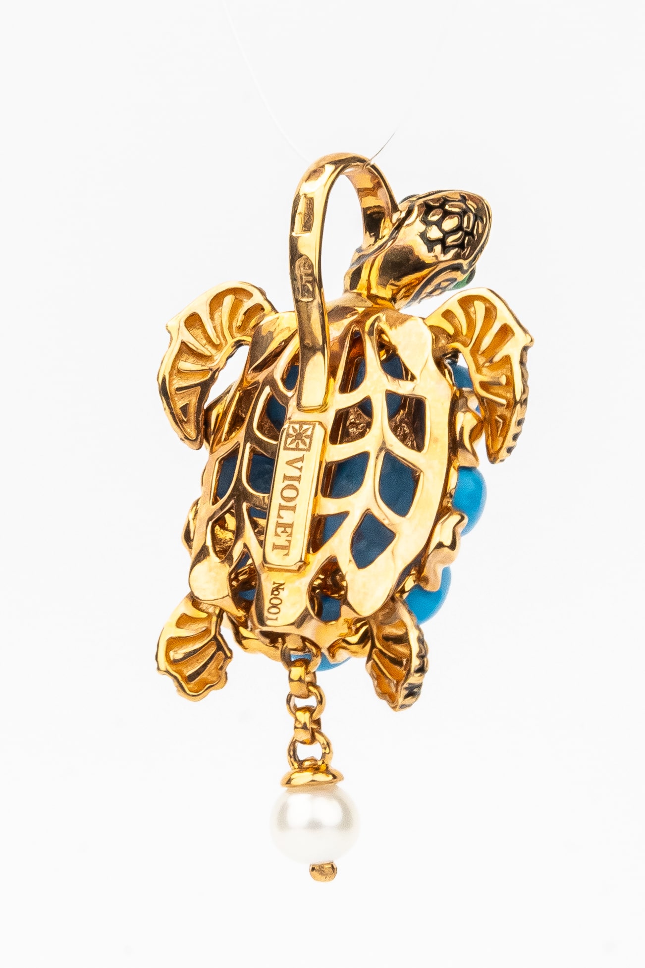 Подвеска из золота c эмаль, жемчугом и бирюзой