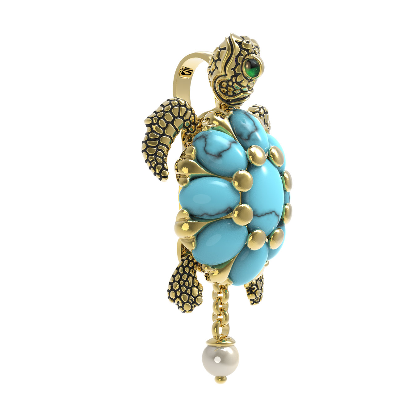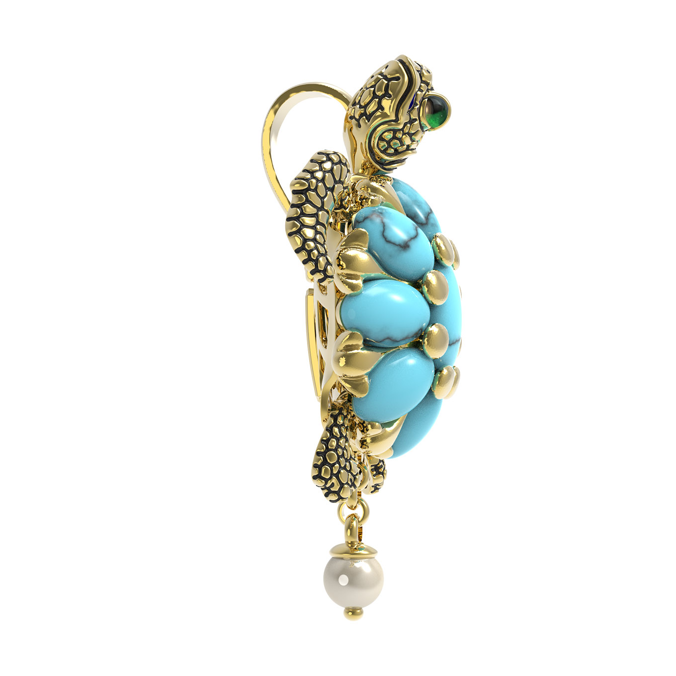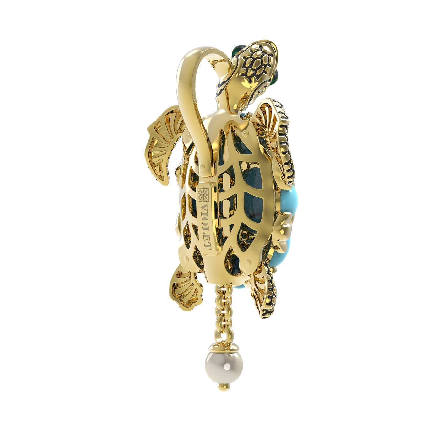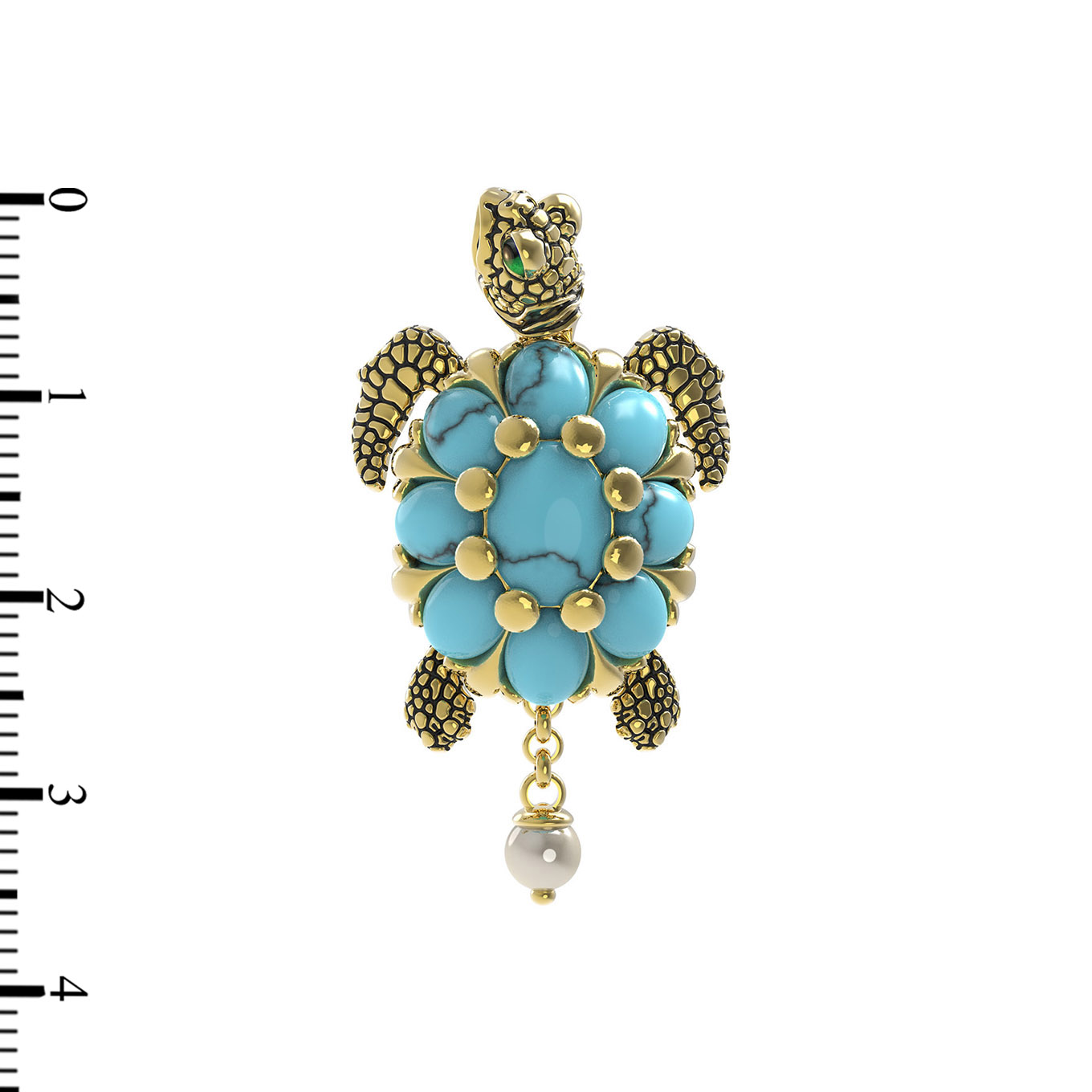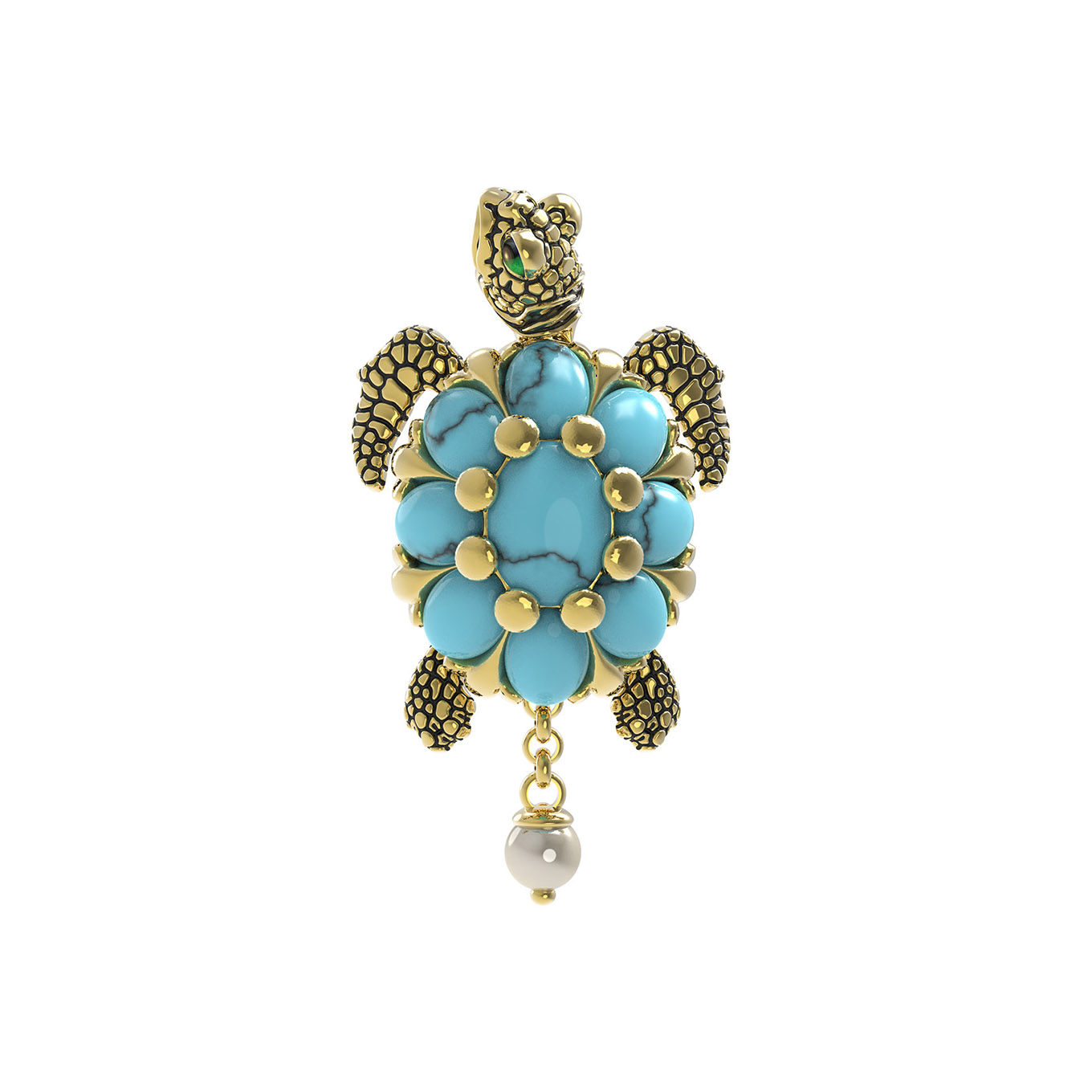 Подвеска из лимонного золота c эмаль, жемчугом и бирюзой