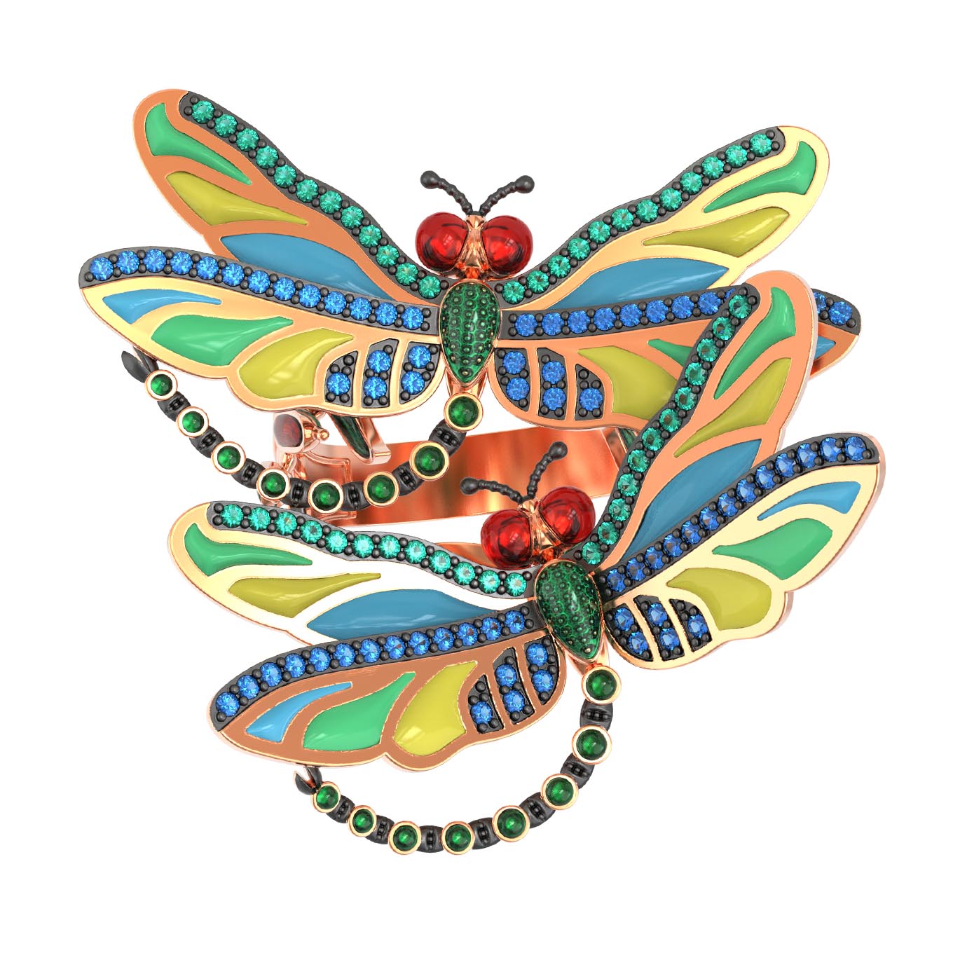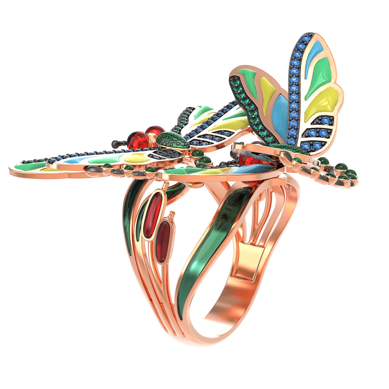 Кольцо из золота c сапфиром, изумрудом и эмалью