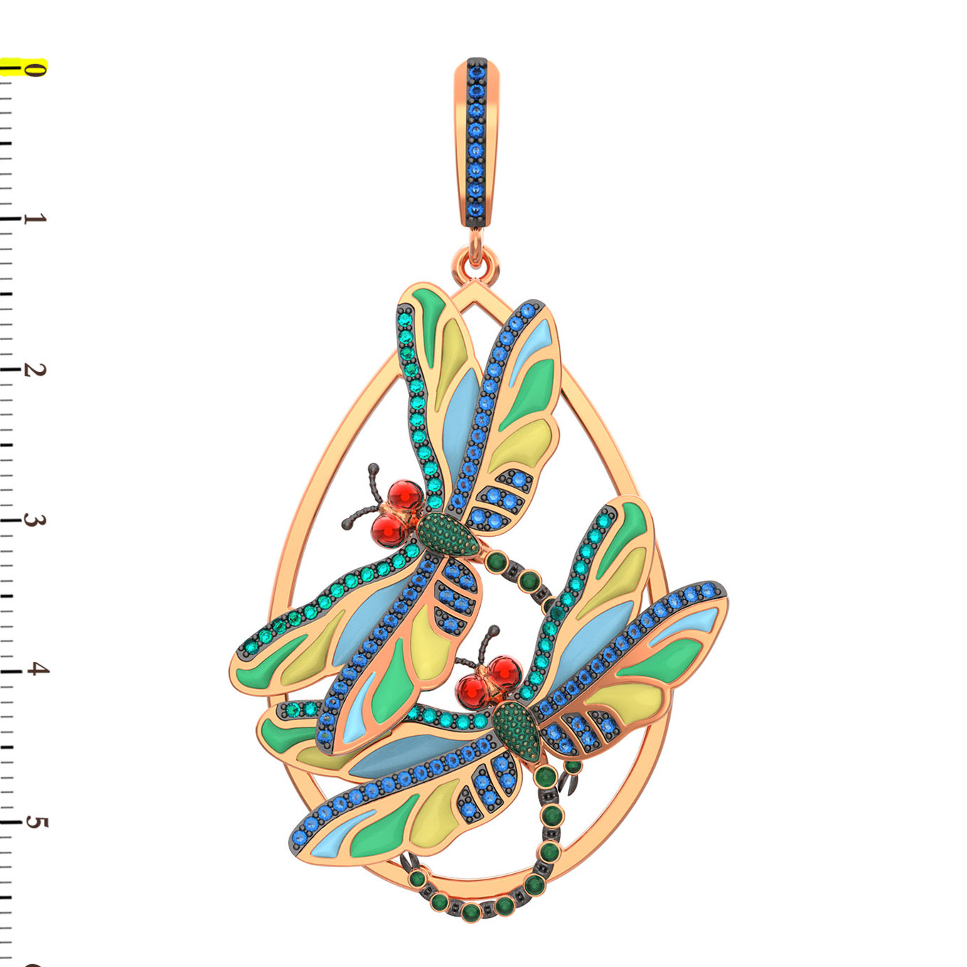 Подвеска из золота c сапфиром, изумрудом и эмалью
