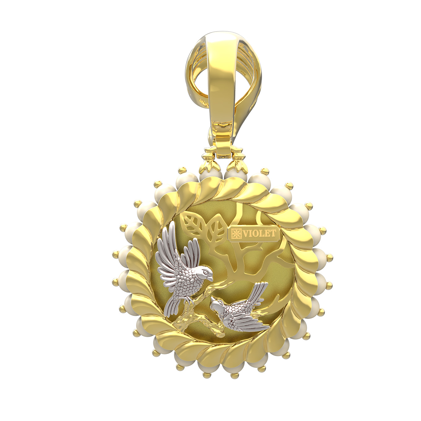 Подвеска из лимонного золота c эмаль и жемчугом
