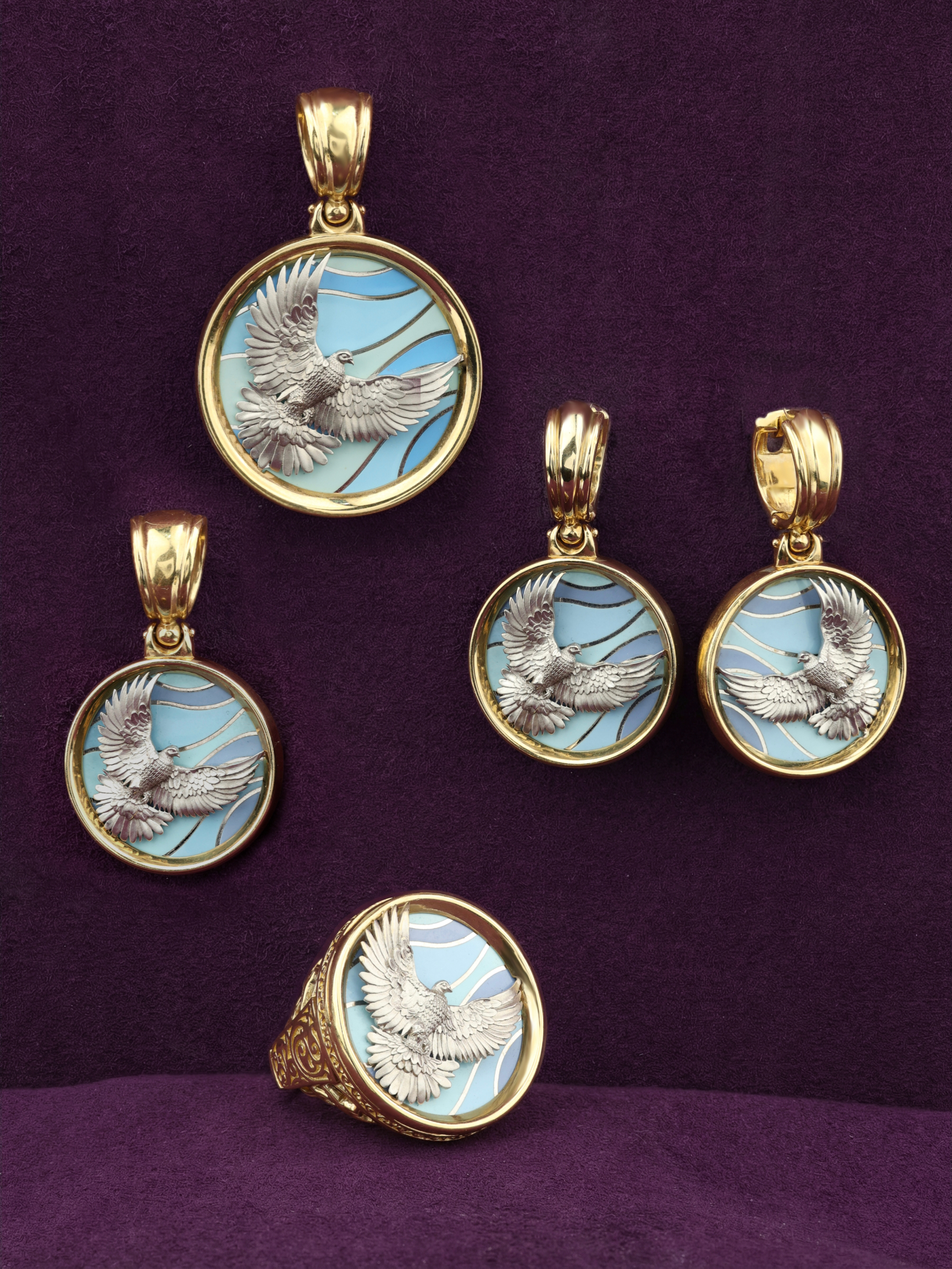 Серьги из лимонного золота c эмаль