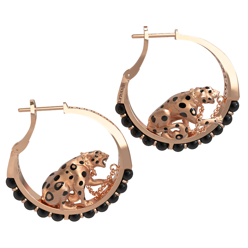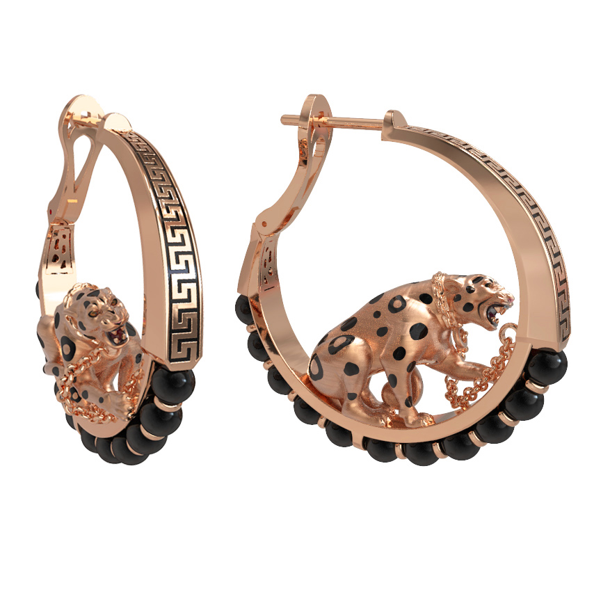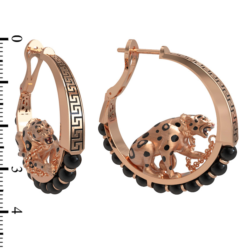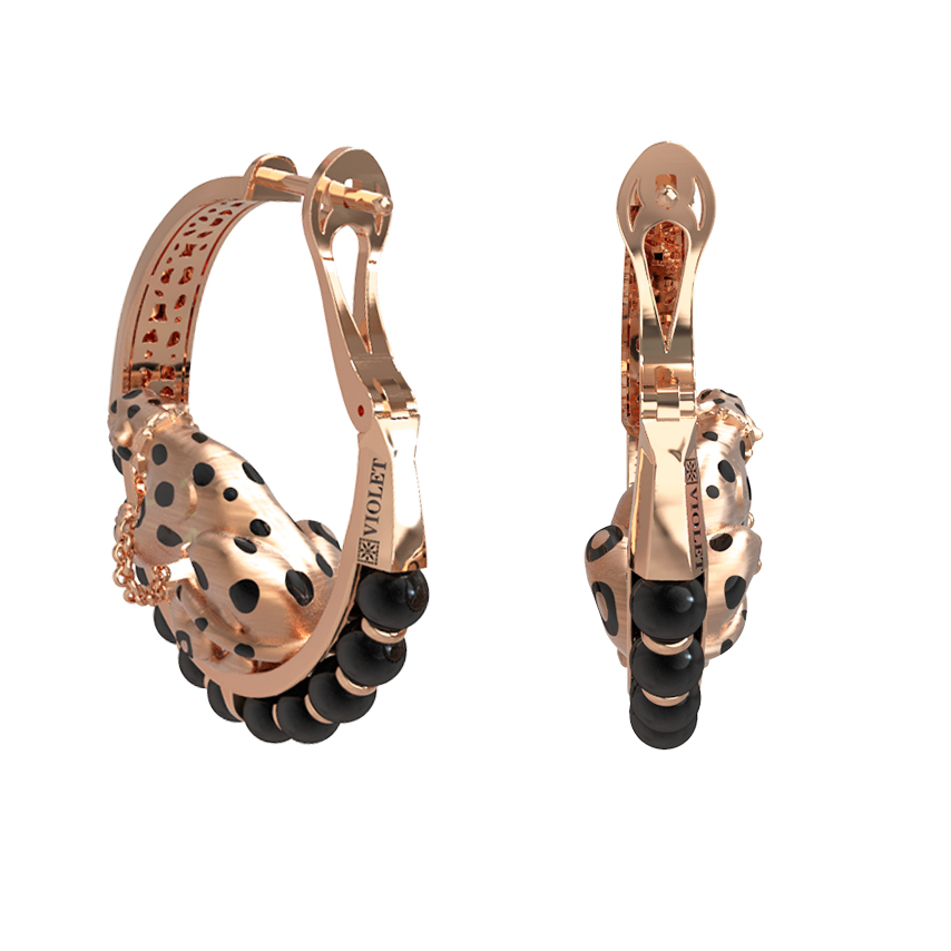 Серьги из золота c эмаль и ониксом