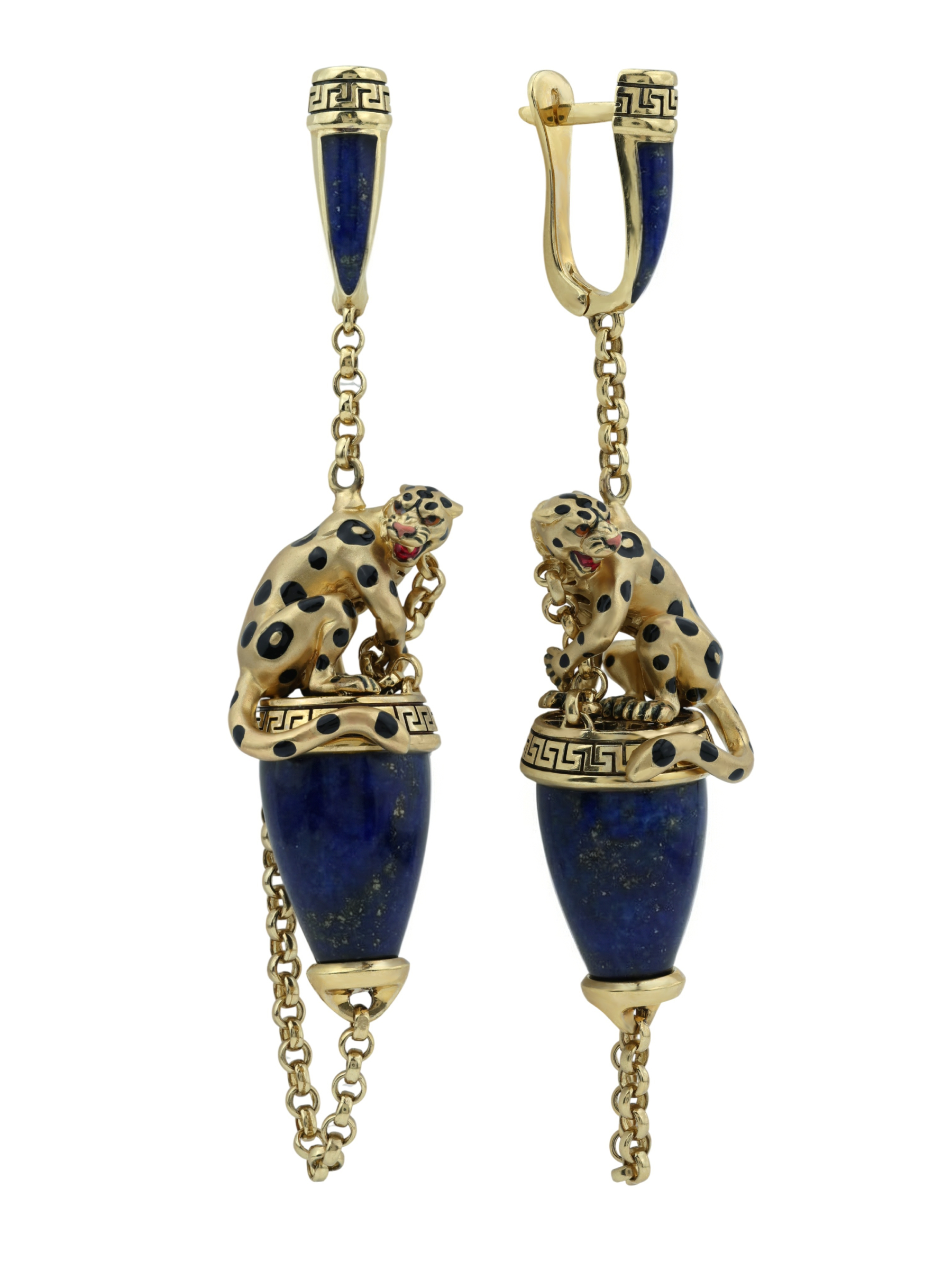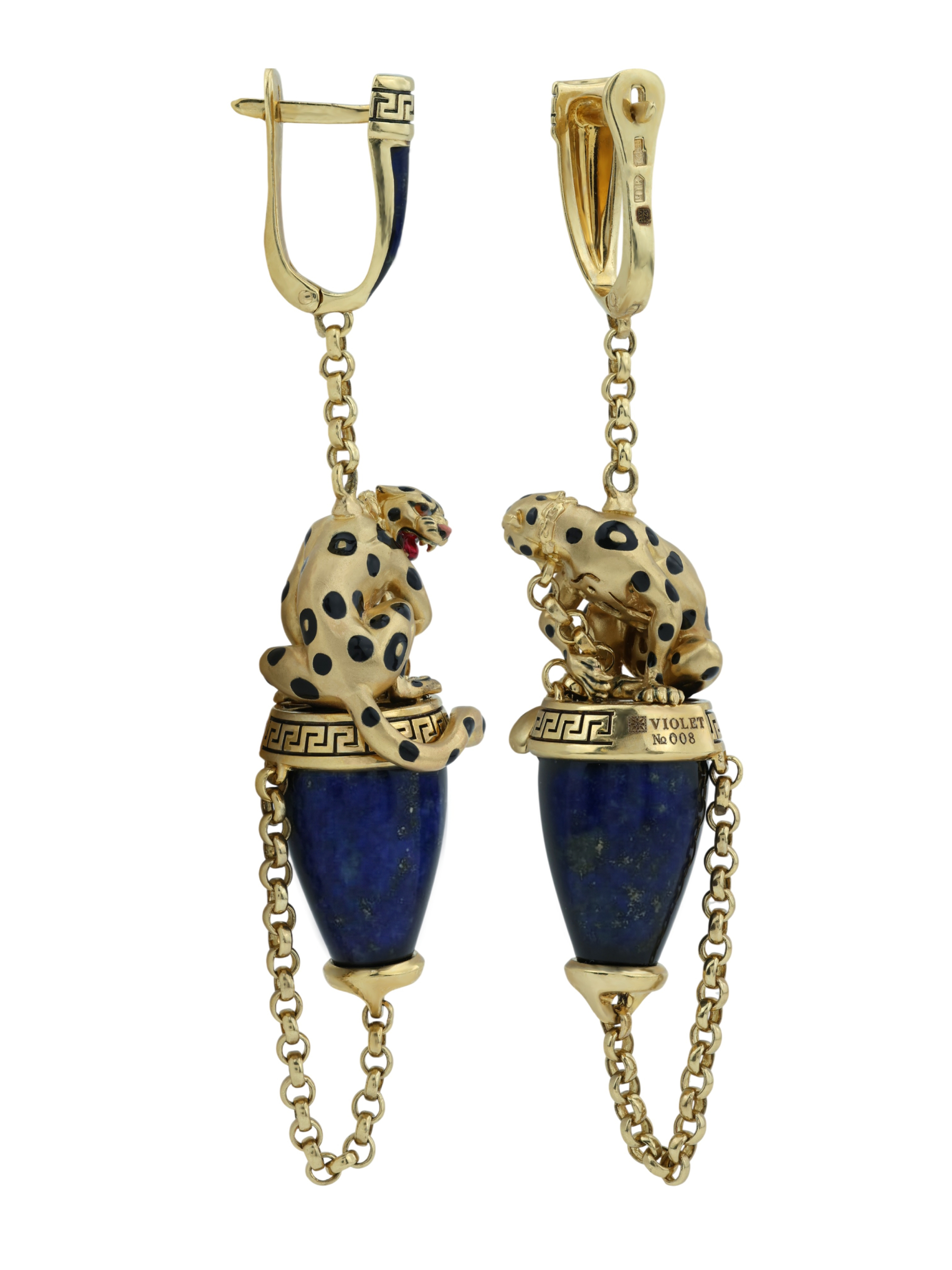 Серьги из лимонного золота c эмалью и лазуритом