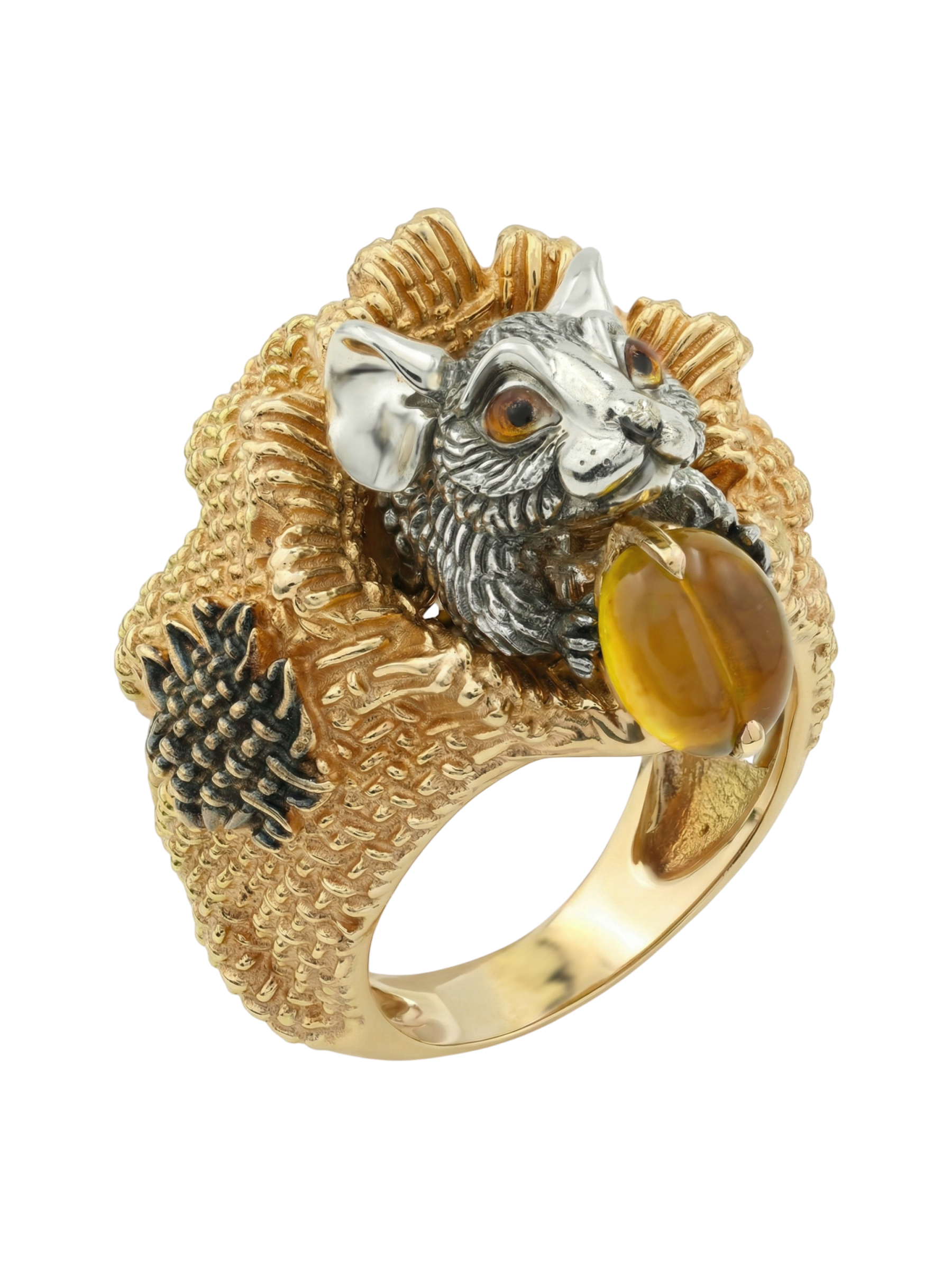 Кольцо из лимонного золота c эмаль и янтарём