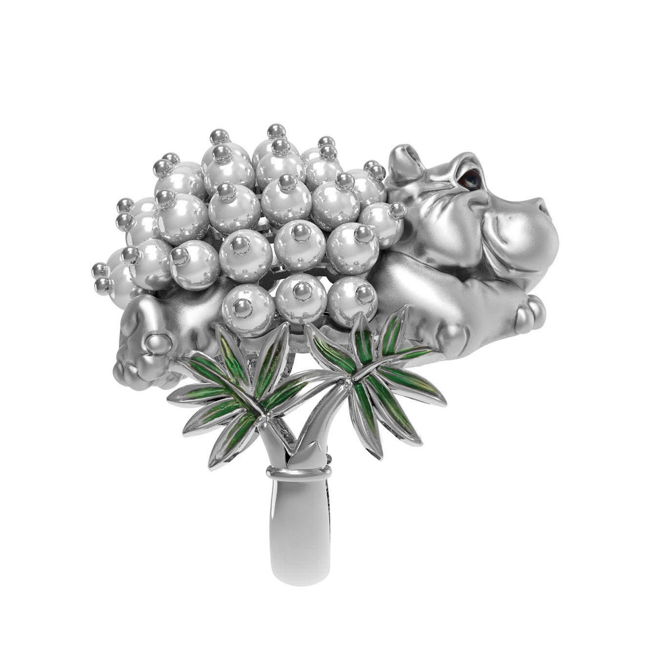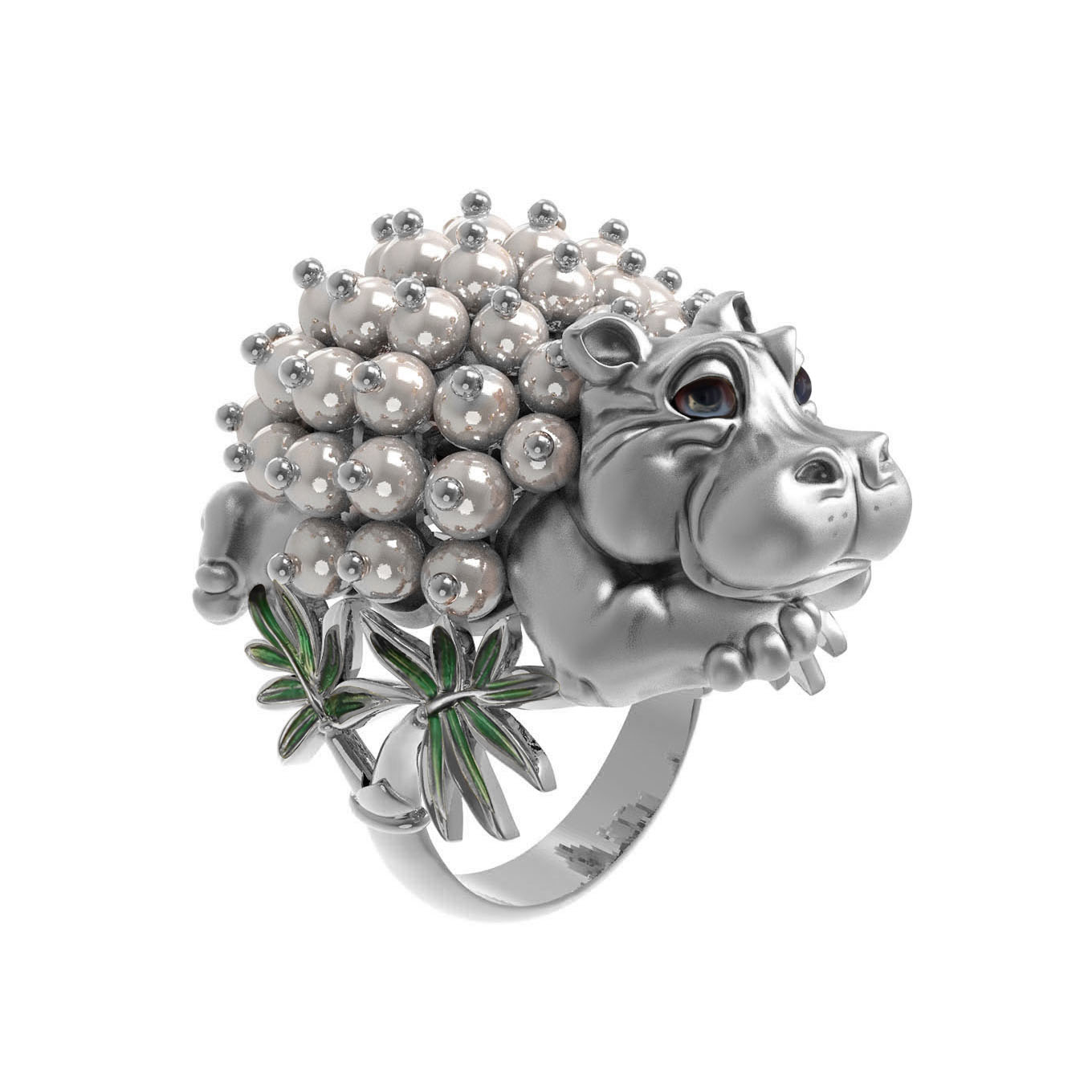 Кольцо из белого золота c эмаль и жемчугом