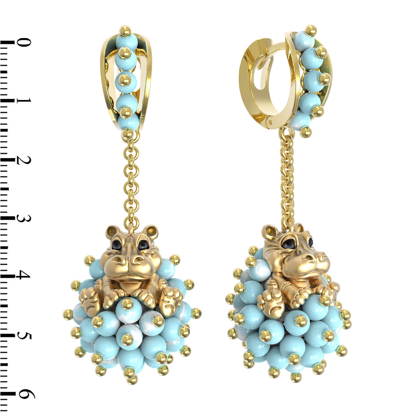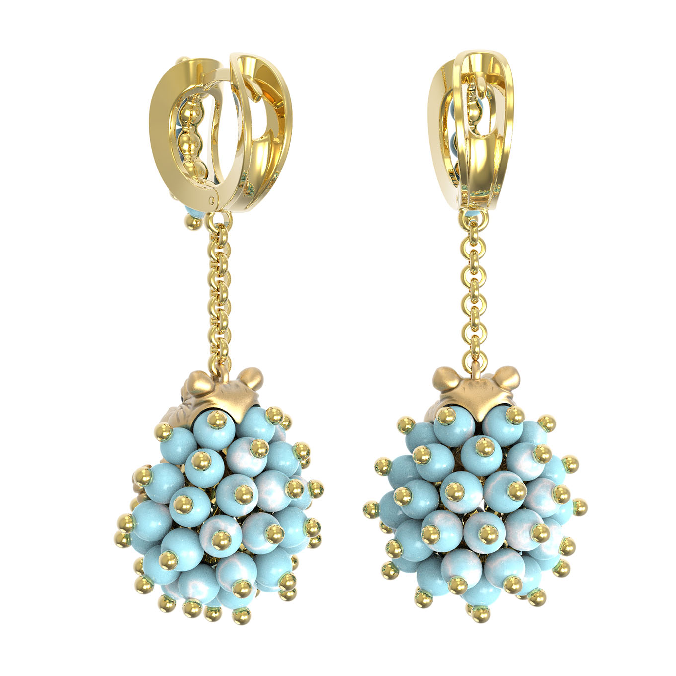 Серьги из лимонного золота c эмалью и бирюзой
