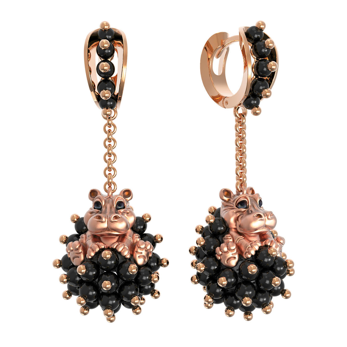 Серьги из золота c эмаль и ониксом