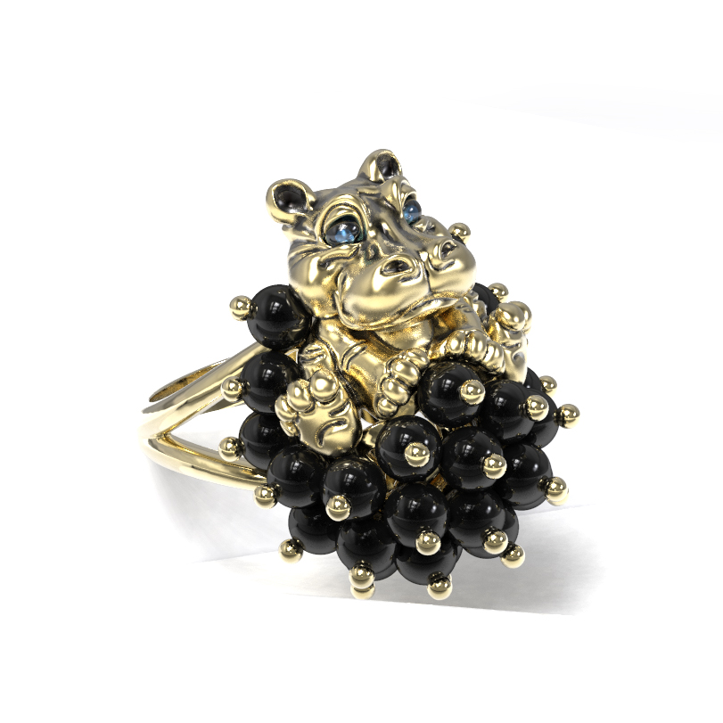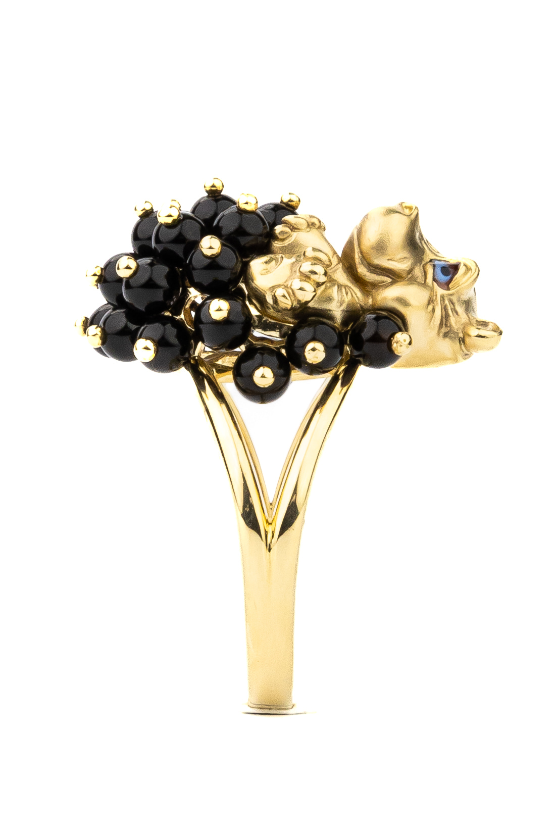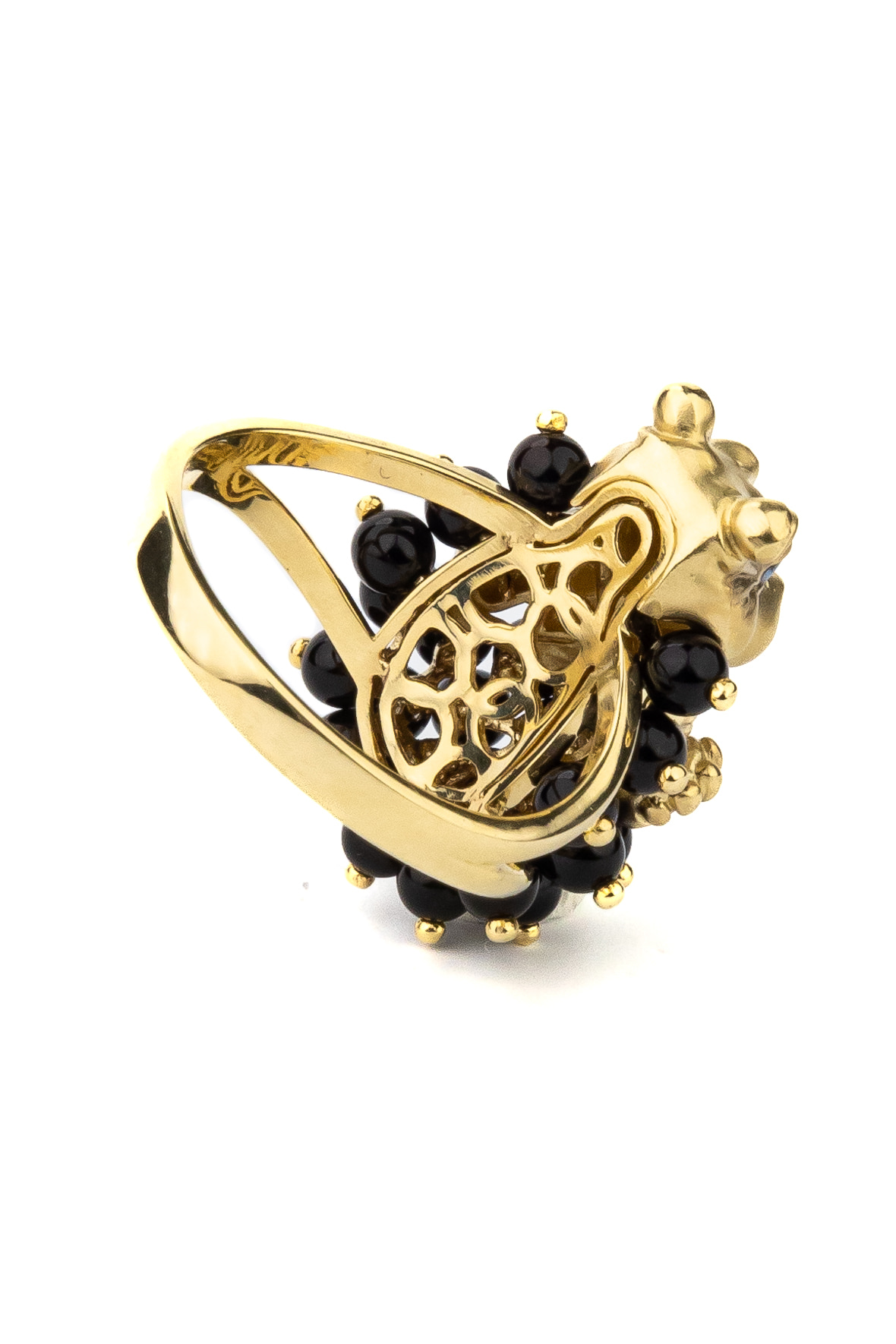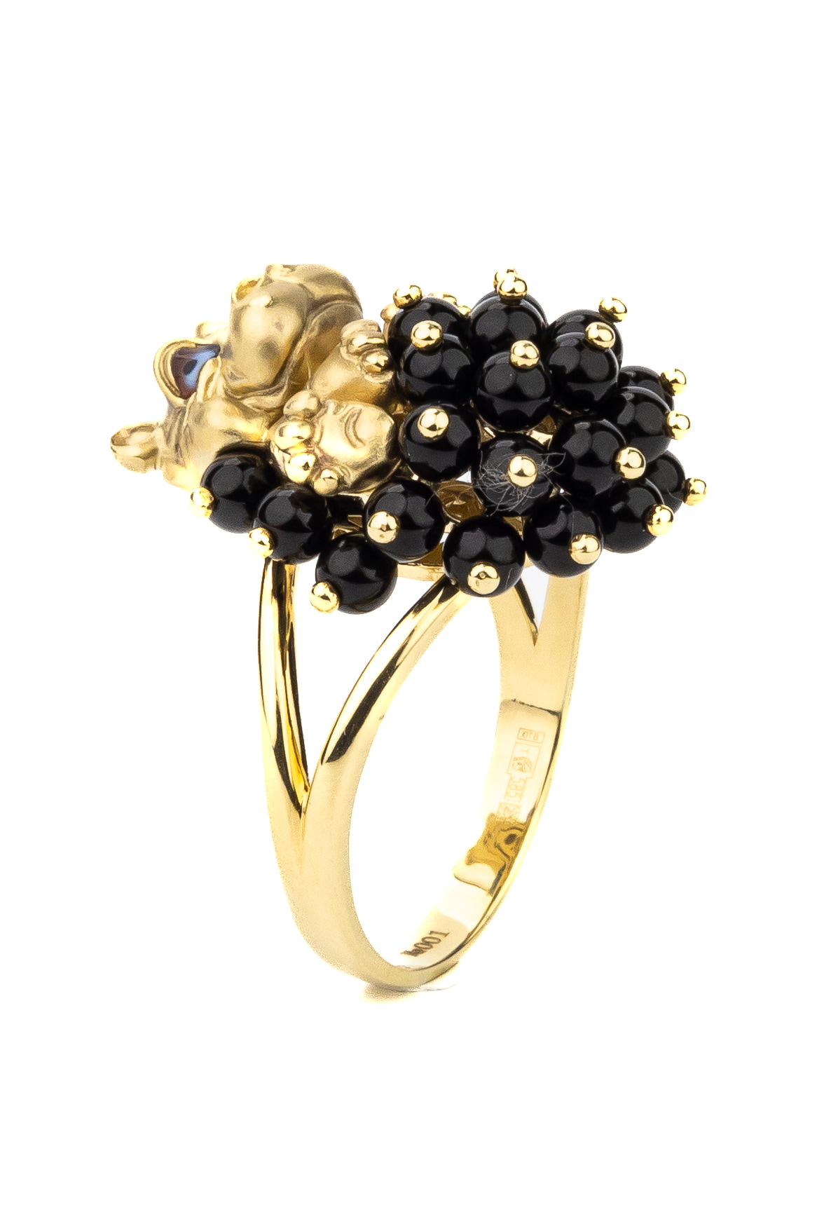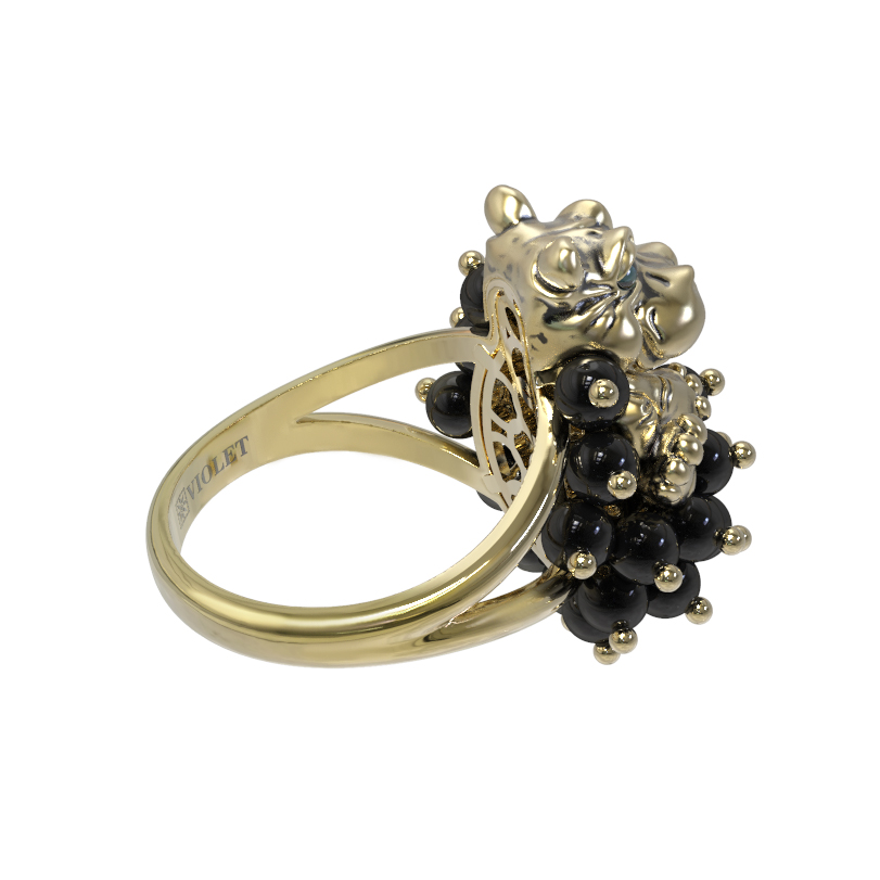 Кольцо из лимонного золота c эмаль и ониксом