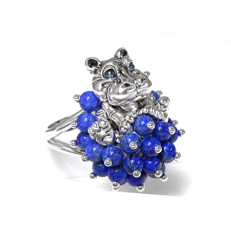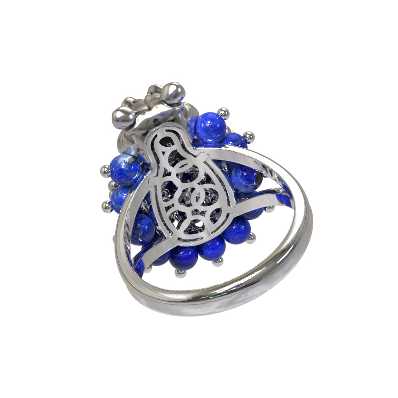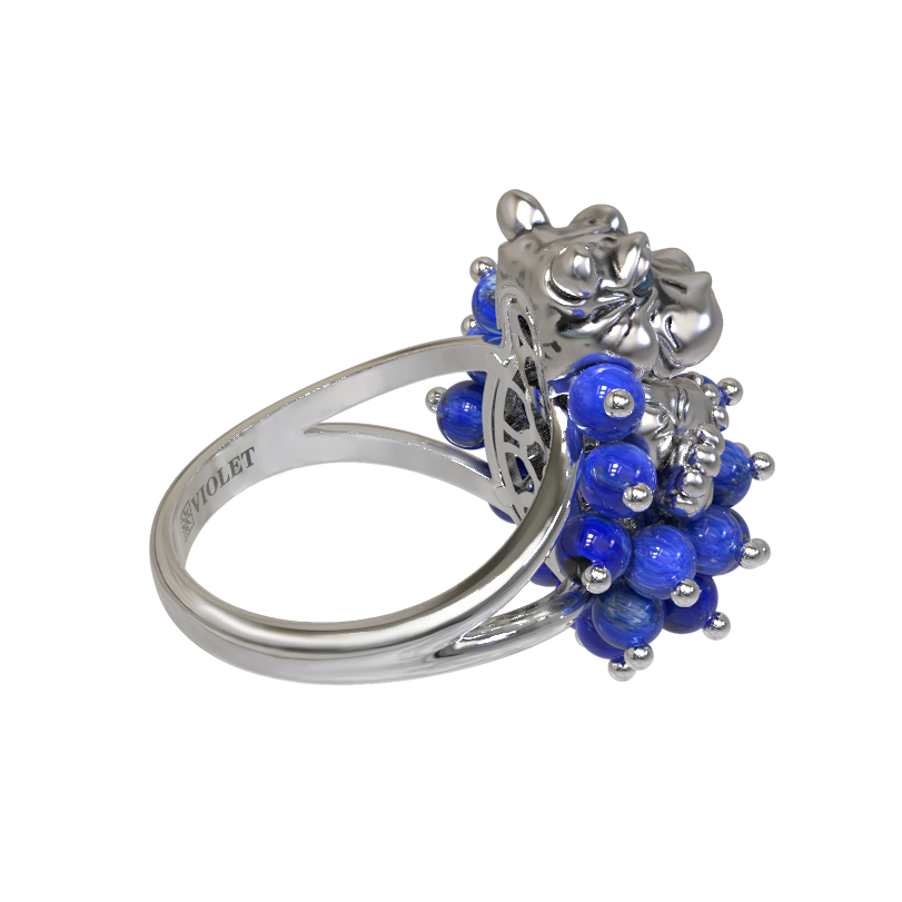 Кольцо из белого золота c эмаль и лазуритом